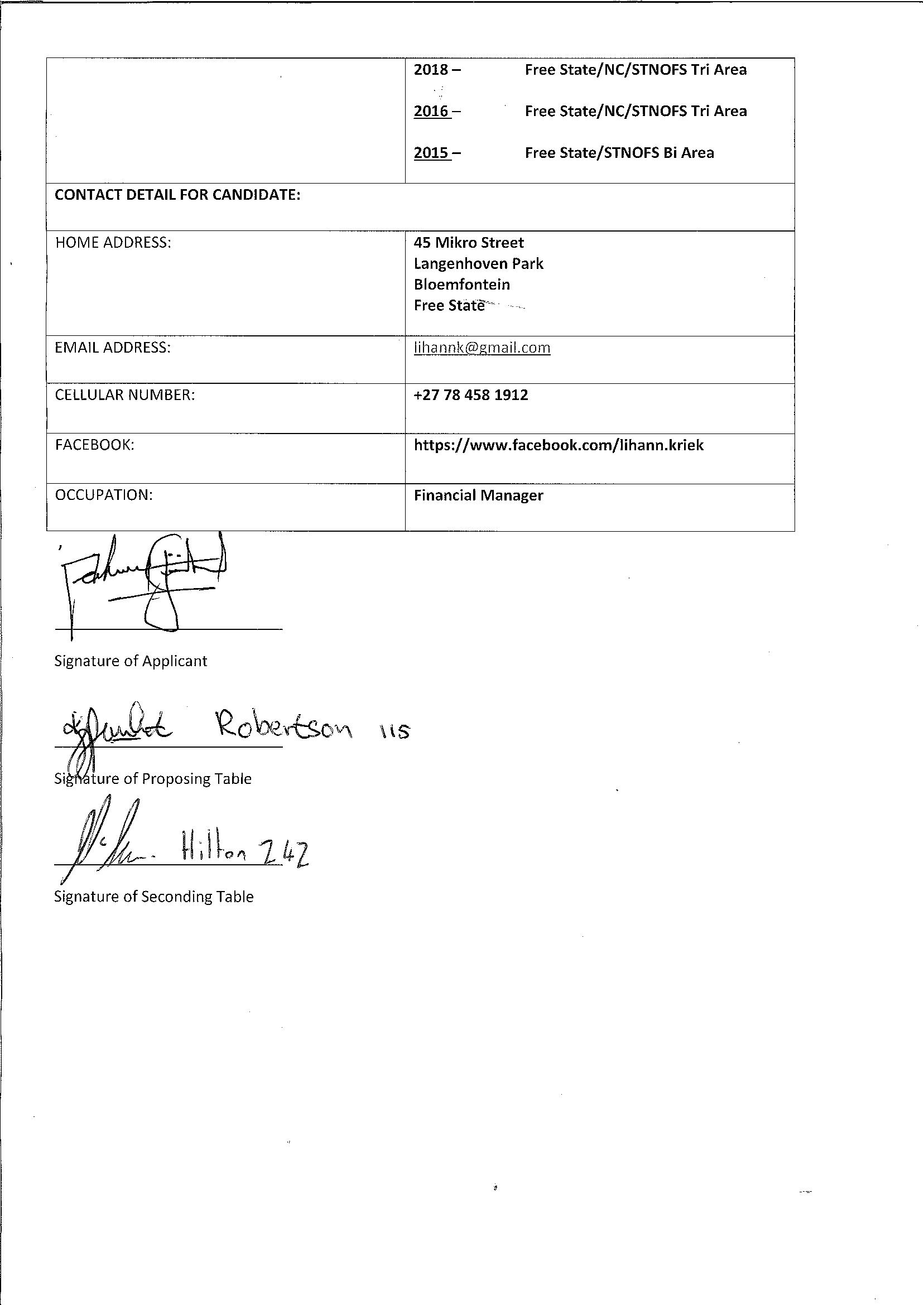 Lihann Kriek RTSA VP Candidate Statement