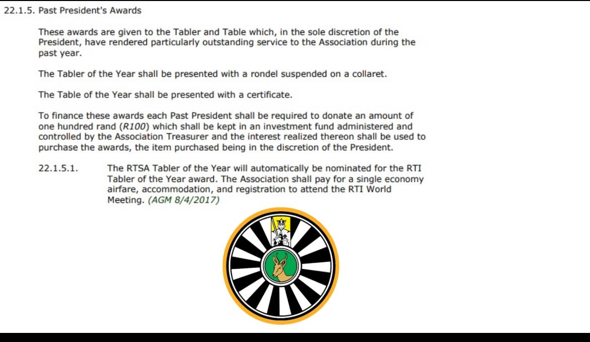 We append hereto all relevant reports, candidate nominations and motions as per the RTSA Constitution. All clubs should please peruse and consider the content and obtain a mandate from its members relating to the voting at Artsa. All members should please be encouraged to contact any of the RTSA Executive Council members regarding any enquiries of any reports or motions appended in the 45-day pack. I also want to encourage the members to attend the forums during ARTSA and take part in the discussions.