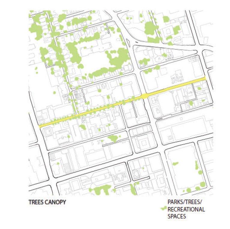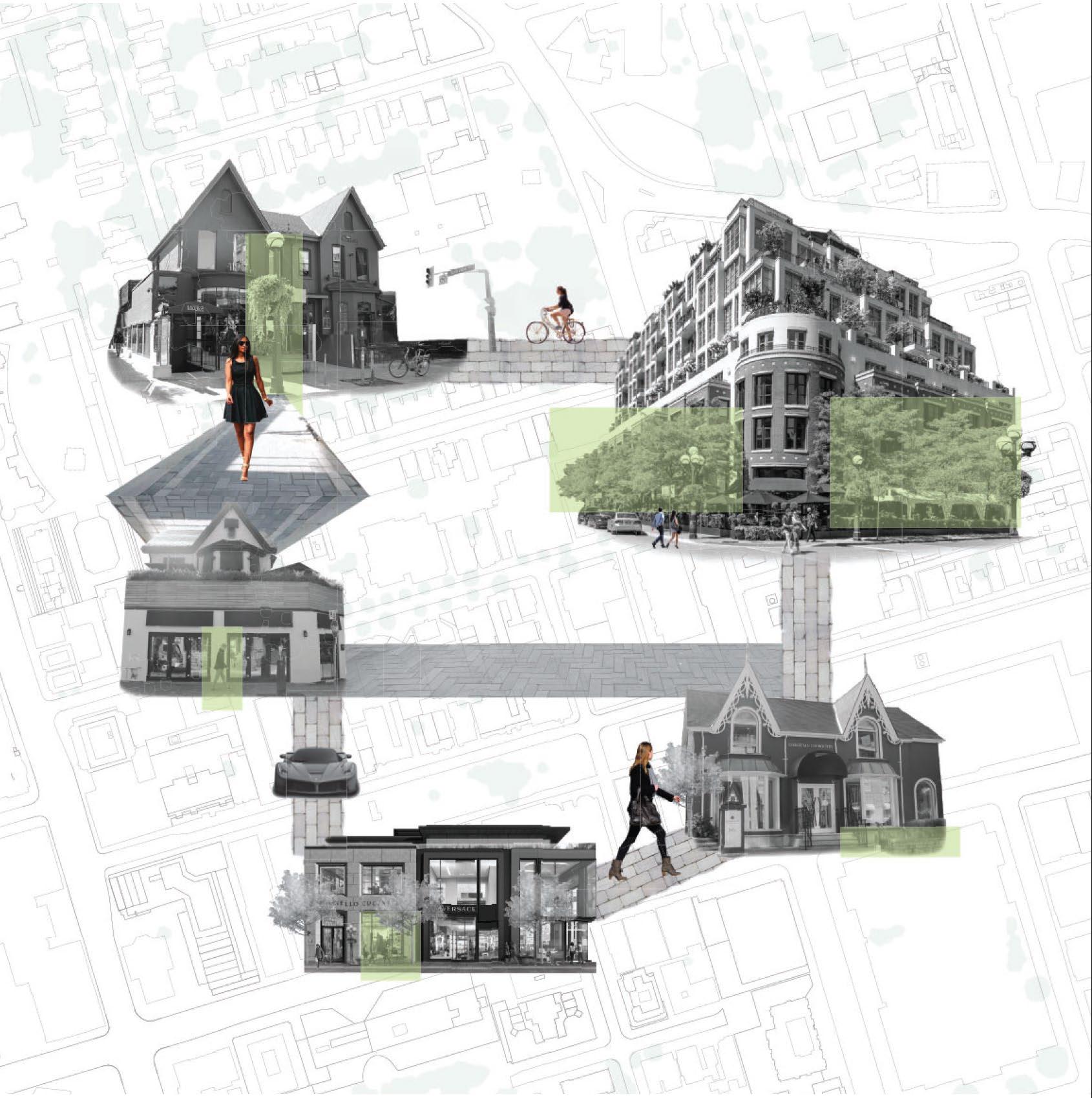 Despite its urban location, Yorkville Avenue retains a distinct separation from the city. This separation is achieved through vast green spaces, the absence of heavy traffic like streetcars or dense parking areas. The cobblestone paving acts as both a physical and visual boundary, reinforcing the sense of distinction and boundary created between Yorkville Avenue and the adjacent streets. The interconnectivity and circulation of Yorkville Avenue’s street network promote walkability and contribute to its visually appealing and pedestrianfriendly character.