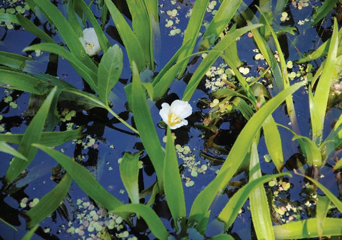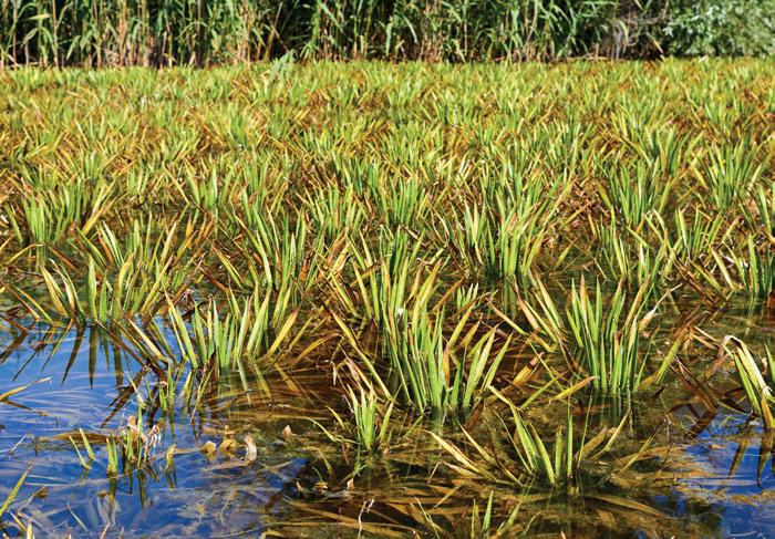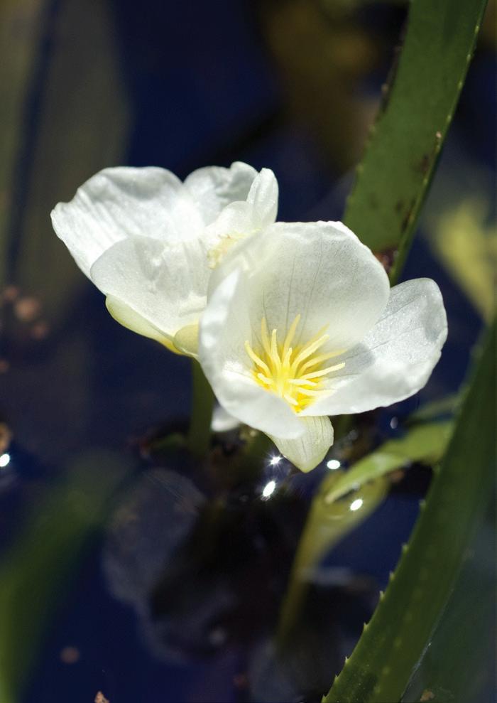 Leaves Resemble aloe plants, and it is also called water aloe. Thin, brittle and droop when submerged, growing up to 60 cm long and 1 cm wide. Dark green, thick, rigid and usually less than 40 cm but 1–4 cm wide when emergent.