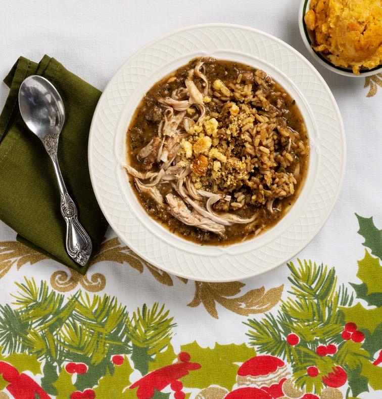 Rouses Butcher Greg Cox, a trained chef and graduate of the John Folse Culinary Institute at Nicholls State University, helped prepare many of the dishes featured in this issue, including the Conecuh Sausage Cornbread Dressing on page 33 and the Oven-Baked Brisket on page 43. Greg now works at our Thibodaux store, just a few miles from the Nicholls campus. A third-generation butcher, he comes by his skill honestly. His family owned Gene Cox Grocery, a fixture in West Monroe for more than half a century. Greg is one of several John Folse Culinary Institute graduates who work at Rouses. Team members attending the program can apply for the Anthony J. Rouse, Sr., Food Entrepreneurship Scholarship, named after our founder, and the Leroy Theriot Meat & Charcuterie Scholarship. Leroy Theriot was a butcher at Ciro’s, the Rouse family’s first grocery store, who later became the Meat Market Manager at the first Rouses Market.