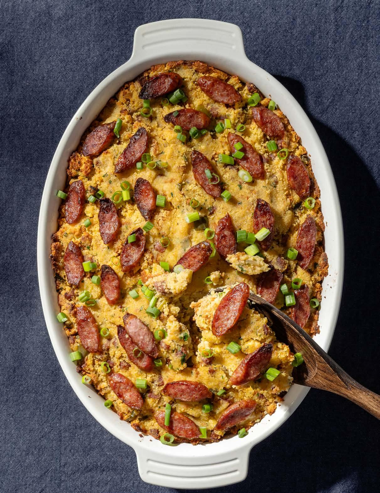 “Any family event, I’m usually rolling up with a catering item from Rouses because everyone knows Harley’s bringing egg rolls. My husband Jeremy is the baker in our family and he makes incredible bread, and my mother-in-law makes a delicious cornbread casserole, but if I’m making something, it’s usually cornbread muffins because they’re easy grab-and-go and great for leftovers. I mix Jiffy with cream-style corn to make them extra good.”