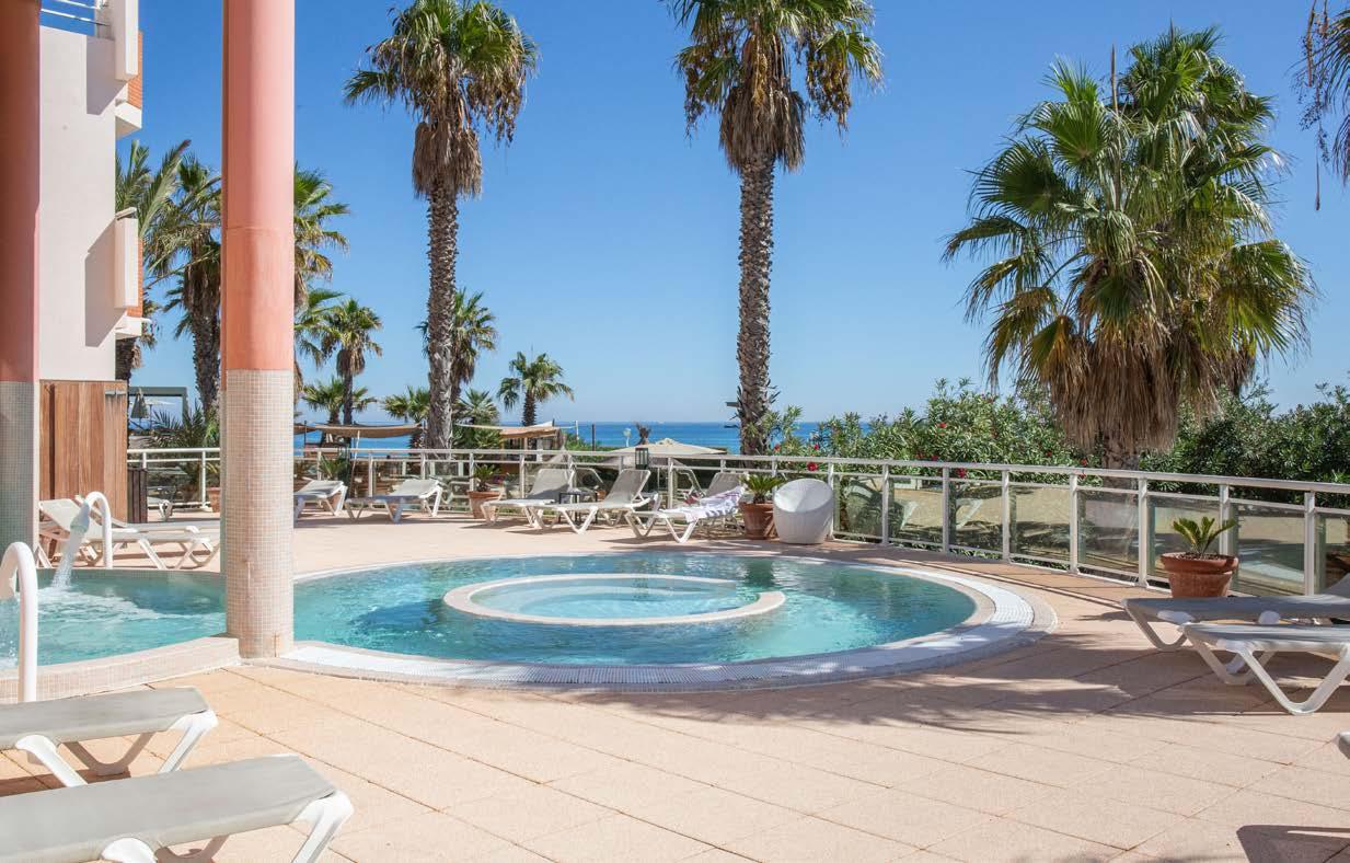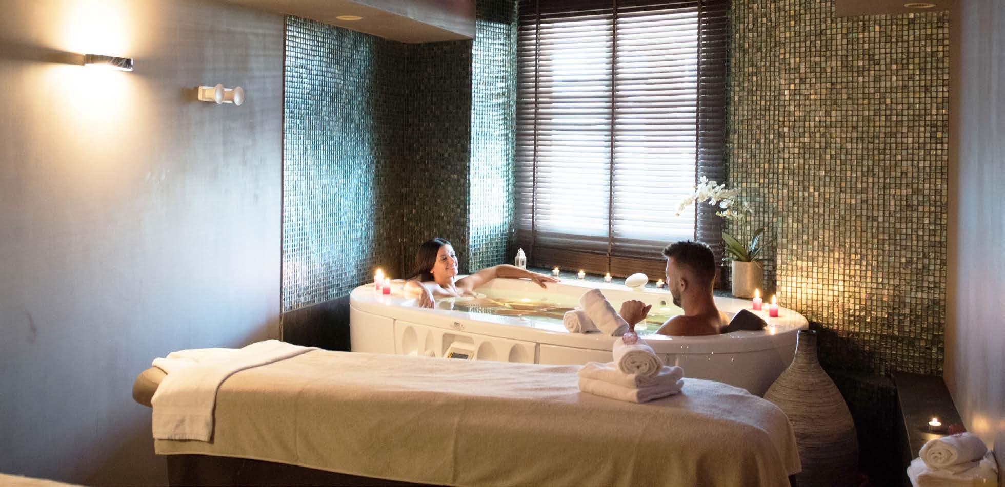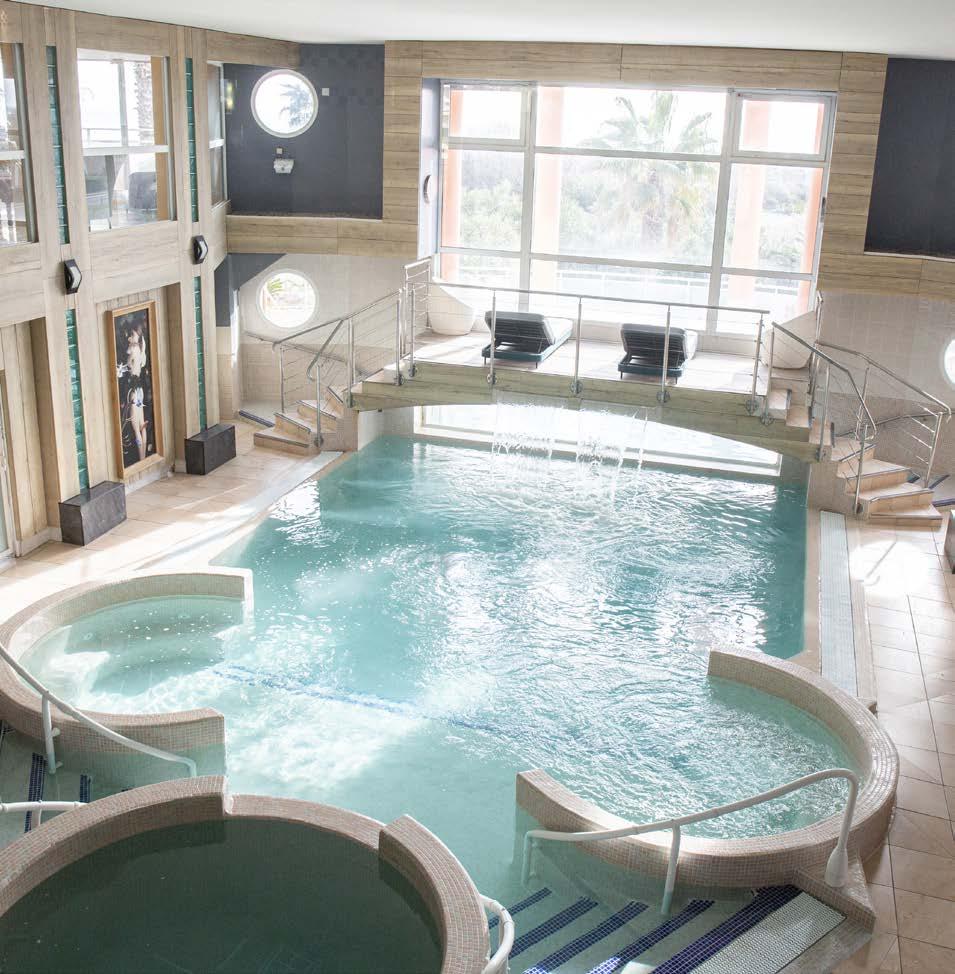 Composé de deux bassins d’eau de mer chauffée (intérieur et extérieur) avec jacuzzis, cols de cygnes de massage, cascade d’eau de mer, jets séquentiels, sauna, hammam oriental, salle de fitness et de plusieurs espaces détente.