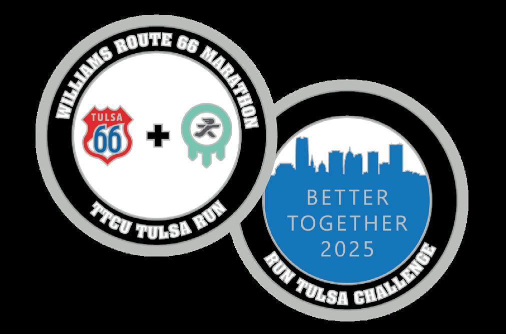 The Williams Route 66 Marathon and Tulsa Run are better together! If you participated in this year’s Tulsa Run, don’t forget to claim your exclusive Better Together coin after you cross the finish line at the Route 66 Marathon! Simply stop by the Information/Awards Tent just beyond the finish chute to pick up your coin!