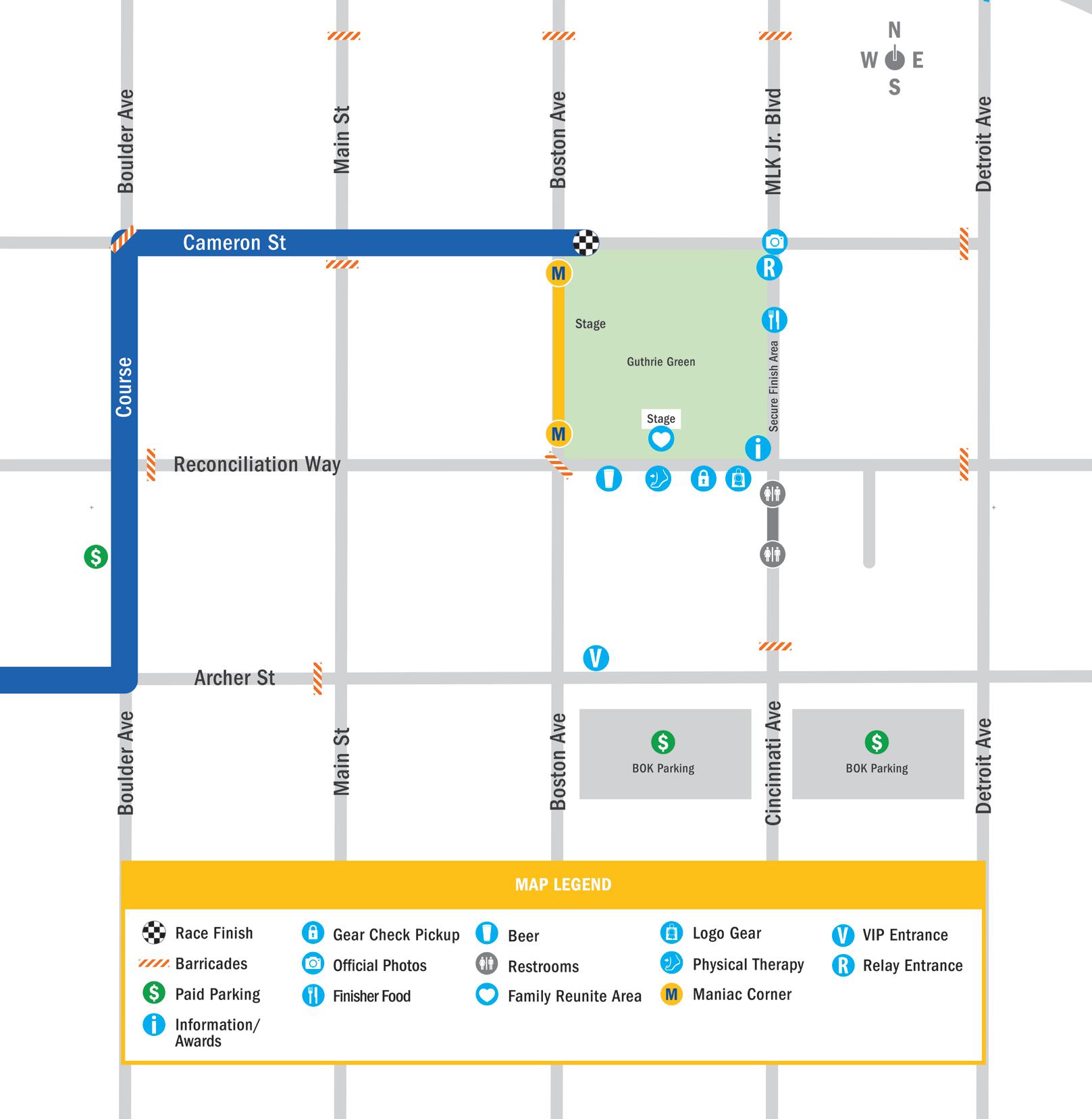 • You can also watch runners take the Center of the Universe Detour (1st Street and Boston Ave). This is a great place to watch runners as you can easily walk back to Guthrie Green to watch someone finish after they take the detour.