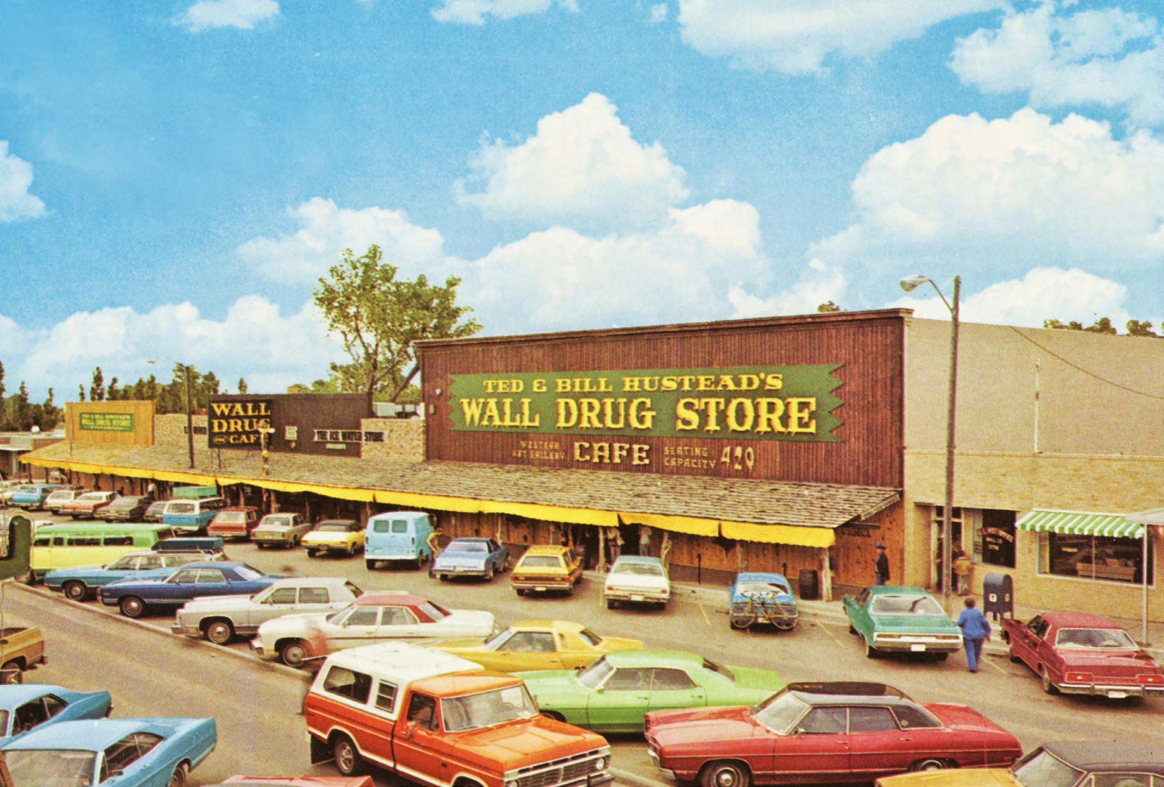After graduating pharmacy school in 1929, Theodore (Ted) Hustead spent two years working for other druggists before he and his wife Dorothy decided it was time to forge their own future. With a $3,000 inheritance left by his father, Ted and Dorothy drove across Nebraska and South Dakota in their Model-T, searching for a place to settle and call home. The country felt much bigger then. “As we searched, we were sure of two things: we wanted to be in a small town, and we wanted the town to have a Catholic church. We wanted to be able to go to mass every day,” Ted Hustead, who passed away in 1999, recalled in an excerpt from Guidepost Magazine. The Husteads found what they were looking for in Wall: a small town with a Catholic church and a quaint drugstore for sale on the west side of Main Street. Despite the doubts of their extended family, including a cautionary remark from Ted’s father-in-law that Wall was “about as Godforsaken as you can get,” the couple remained resolute and determined to pursue the opportunity. The warm welcome from Wall’s priest, doctor, and banker, who eagerly encouraged them to join their tight-knit community, was all the convincing that Ted needed. “When they started the business in late 1931, the Hustead Drugstore was less than 1,500 square feet, a 24-foot by 60-foot store, and my grandparents were living in the back, 20 feet behind a red curtain,” said Rick Hustead, third generation owner and proprietor of Wall Drug. “They had a four-year-old son, Billy — my dad — and he remembers the family being so broke that he worried he’d be given up for adoption.” It’s true, the Hustead faced significant struggles, as business remained slow. But it was a difficult time for the nation, so Ted and Dorothy gave themselves a five-year timeline; if things had not improved drastically by then, they would reevaluate, likely move, and try again somewhere else. Then, just months before their five-year deadline expired, a breakthrough came on a sweltering summer afternoon in 1936. The family was still living behind a curtain in the back of the cramped pharmacy, but they had managed to scrape together enough money to rent a small room across town,
