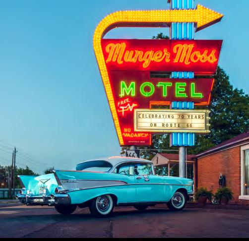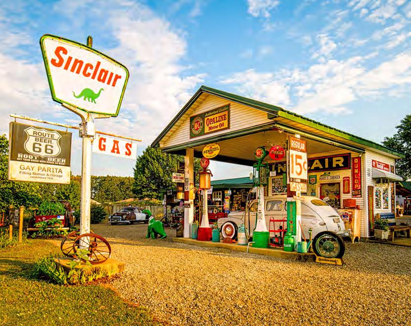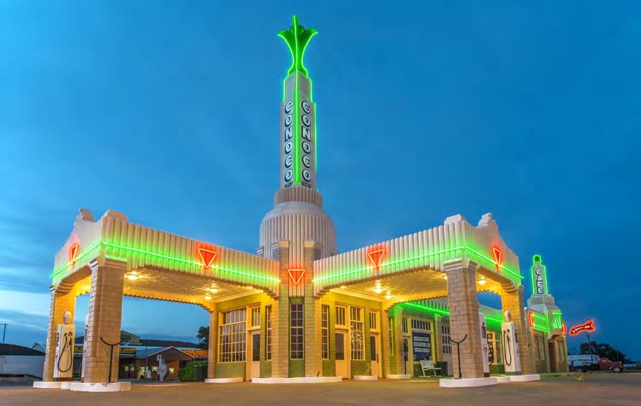 Step into Dixie’s, America’s first truck stop, where old-fashioned, allAmerican charm meets hearty comfort food. Founded in 1928 by J.P. Walters and John Geske as Dixie Truckers Home, the original building combined a small mechanic’s garage with a counter cafe and barstools, offering truckers a home away from home. After a fire in 1965, the community helped rebuild the iconic stop, which still stands today, complete with original road signs. Over the years, Dixie’s changed hands and was remodeled by Road Ranger, yet its interior retains the spirit of Route 66. The menu offers all-day breakfast, a hearty buffet, and classic favorites like chicken-fried steak and Cobb salad. Comfort food with true Southern hospitality for travelers and locals alike.
