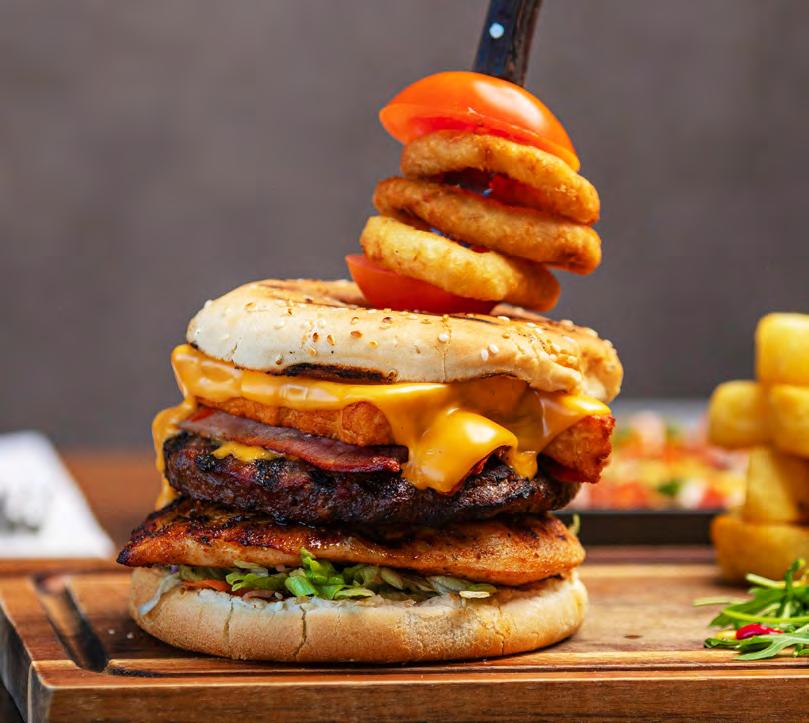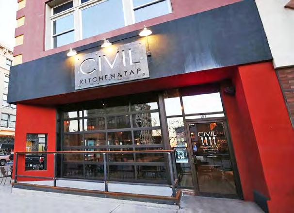Civil Kitchen, downtown Springfield’s go-to for scratch-made comfort with chef-crafted swagger, sits at the heart of historic Park Central Square, a civic hub since the late 19th Century. Framed by early 20th-Century landmarks like the Fox Theatre and the History Museum on the Square, the area got its modern look in the 1970s, when it was redesigned into a pedestrianfriendly plaza with terraces, a limestone fountain, and plenty of space to linger. Today, it’s the perfect backdrop for Civil’s effortlessly hip, warmly lit vibe. Grab a fountain-side patio seat or cozy up inside, then dive into starters like colossal onion rings, flash-fried kale, or loaded Brussels sprouts. Mains like the Civil Burger, pork-belly tacos, and seasonal comfort food riffs always hit the spot.