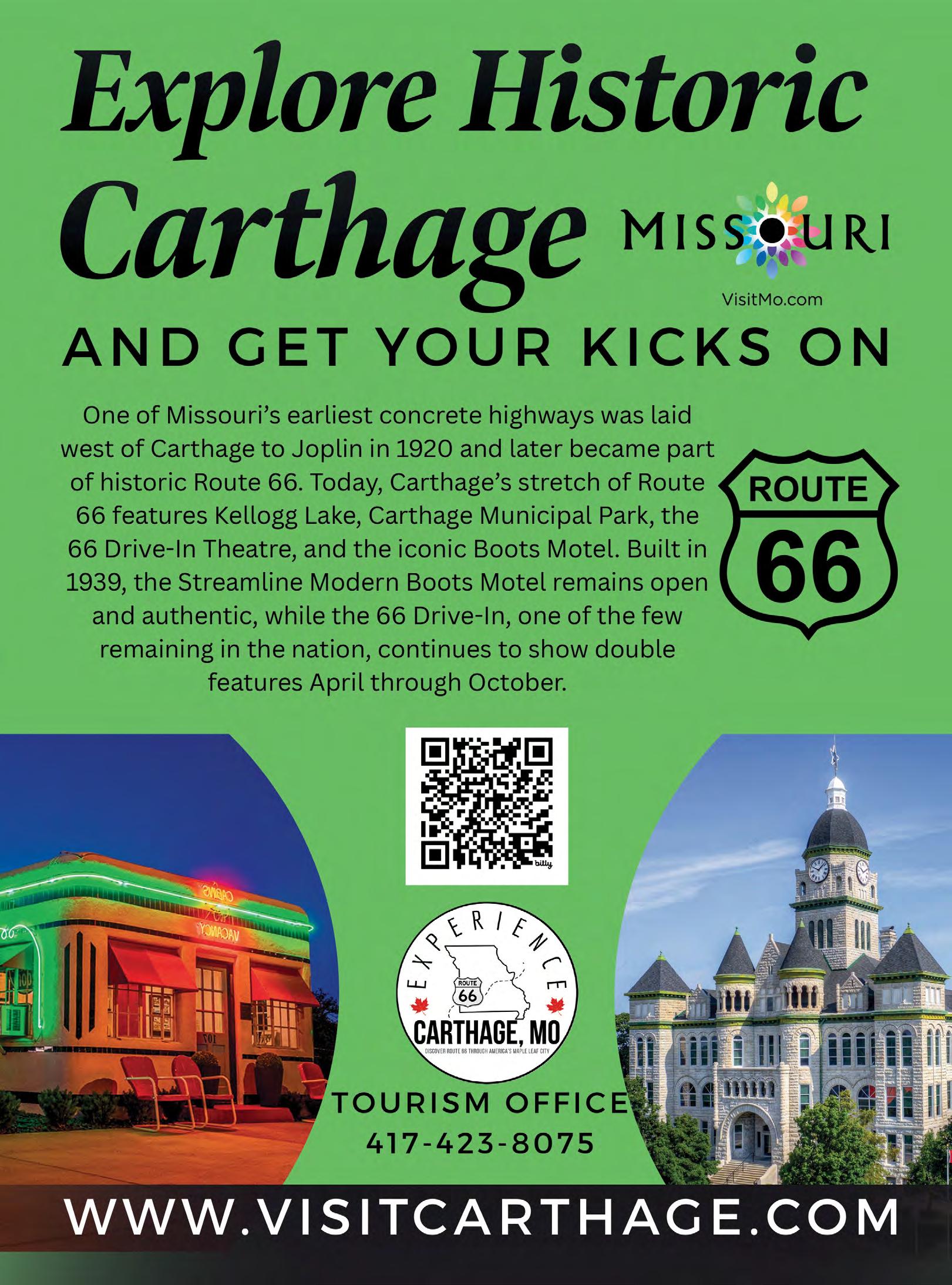 A relaxing jaunt — about 180 miles southeast — from the picturesque town of Carthage, Sikeston makes for a surprisingly fun and quirky pit stop, or even a destinationworthy getaway. Don’t let its small-town size fool you: Sikeston is packed with character, local pride, and a roadtrip-friendly energy that’s easy to appreciate.