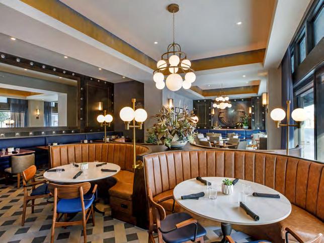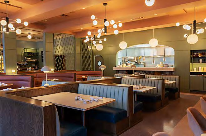 Enjoy refined cuisine amid a century of St. Louis history at The Preston, nestled within the historic Chase Park Plaza Hotel. Named for the hotel’s original architect, Preston J. Bradshaw, the restaurant combines vintage-inspired elegance with contemporary comfort. The warm dining room blends muted greys, gilded accents, and curated artwork, evoking a sense of historic glamour. Semi-circular booths and tables sit atop diagonally laid maple hardwood floors, guiding the eye toward the open stainless-steel kitchen, an inviting backdrop for an elevated dining experience. Standout dishes include dry-aged steaks, fresh seafood, and inventive poultry creations. But the true showstoppers are the pretzel croissants. Crunchy, buttery, and just-salty-enough. Dining here is that memorable stop filled with flavor, history, and style.