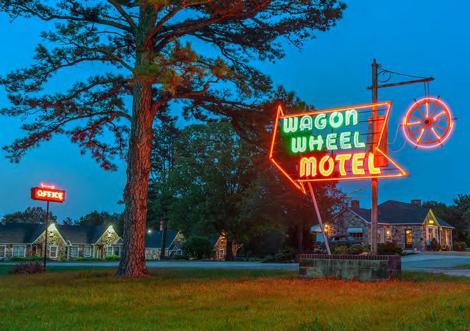 Times were tough, and the roads even tougher. Long dirt sections tempted some to create mud bogs, as the Jericho, Texas, story goes, and then demanded travelers pay up to get towed out. But others were more forgiving, sometimes letting travelers barter or work off their debt for lodging. The desert, too, was tough, with stations few and far between, and cars drinking both water and oil in such large quantities that motorists had to carry supplies of both. It was still a time, though, when mom and pop could hang their hopes on the roadside, building modest courts with only a handful of rooms, and tiny cafés for travelers to take advantage of as they motored west.