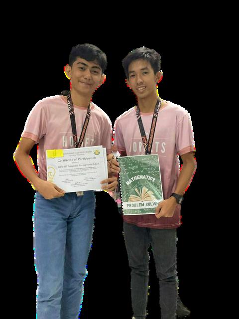 Beforetheyeardrawstoaclose,the announcementwasmadeforthe158 contestantsadvancingtotheareastage, withtwostandoutstudentsfromIDS makingthecutamongtheTop30in Mindanao.Frommorethan6,000 participantsnationwide,ElizeoBennTubo fromGrade9-OmicronandCiarahOlen SalacfromGrade11-Chiwereboth selectedtocompeteinthefollowingpart ofthePMOwhichtookplaceonJanuary13, 2024attheCSM.