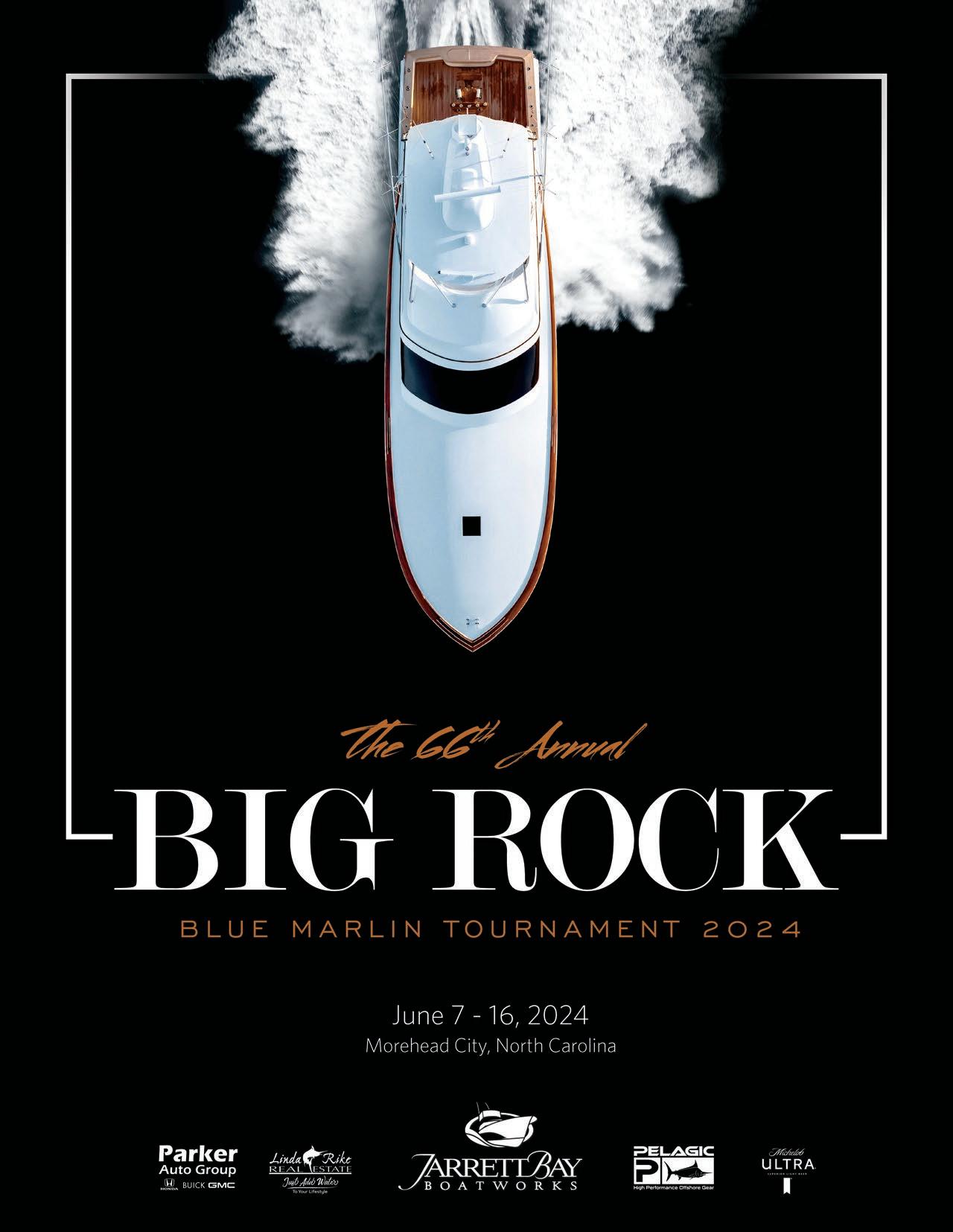 Publisher Content Manager Office Manager CF File Manager Magazine Designer Photography Cover Photo Cabin Fever Communications Carlee Sharpe Ellen Rix Michael Ryan Harry R. Hindmarsh Harry R. Hindmarsh Luke Pearson BIG ROCK MAGAZINE The Big Rock Magazine is owned by The Big Rock Tournament and published in partnership with Cabin Fever Communications. Creative design and photography is produced by Cabin Fever Communications, a full service marketing firm specializing in publications, advertising, promotions, photography, public relations, strategic planning and events. On the World Wide Web www.TheBigRock.com For up to the minute results, standings, live video, rules, merchandise and more, visit us on our website www.TheBigRock.com 710 Evans Street Morehead City, NC 28557 252 247 3575 Harry@CabinFeverCommunications.com 757.535.8484 28 84 126 26 72 125 20 66 122 36 98 152 54 112 157 MEET THE BOARD OF DIRECTORS THE BIG ROCK KIDS TOURNAMENT KELI WAGNER LADY ANGLER TOURNAMENT 2024 EVENT CALENDAR STORY: SAILFISH IN N. CAROLINA THE KWLA 2023 FLEET THE BIG ROCK SPONSORS 2023 REMEMBERING OUR FRIENDS THE KWLA 2023 WINNERS DETAILS OF THE BIG ROCK FOUNDATION MEET THE 2023 FLEET BIG ROCK HISTORY THE BIG ROCK 2023 WINNERS 2023 PHOTO GALLERY WINNERS FROM THE PAST