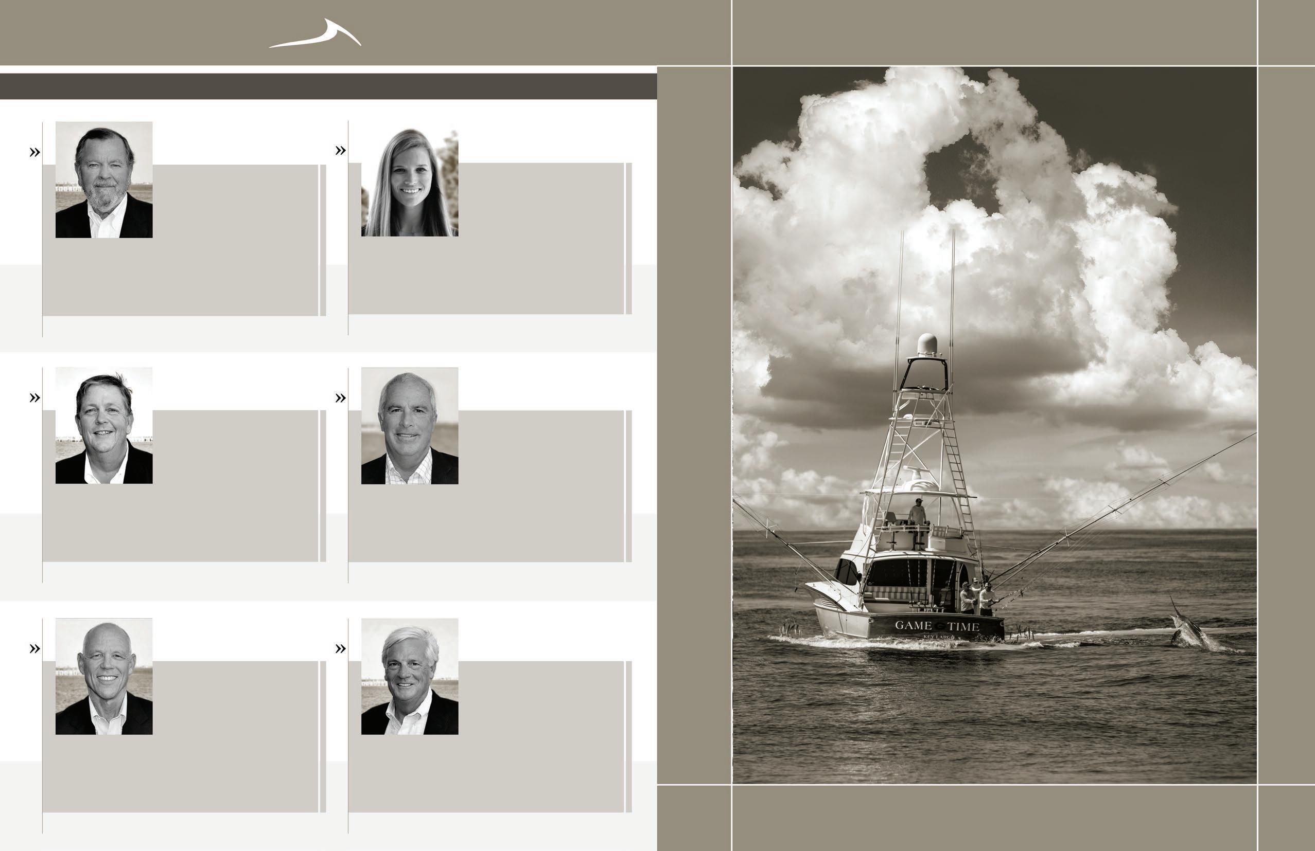 serves as Chairman o the Big Rock Charity Committee. An avid fisherman, Tommy particularly enjoys flyfishing for everything from tailing drum to sailfish. He is an independent insurance agent, and lives in Morehead City with his wife, Wanda. Attorney Roger Crowe provides legal support and sound advice to the Big Rock Board during the tournament and throughout the year. An Eastern North Carolina businessman, Emery Ivey joined the Big Rock Board of Directors in the fall of 2016 , bringing a fresh perspective to the inner workings of the board. As a previous charter boat captain, Dew provides valuable input as Rules Committee chairman during the tournament week and throughout the year. He and his wife, Valorie, live in Beaufort. • Past President 1997–1999 • Board Member Since 1992 • Past President 2019 - 2021 • Board Member Since 1992 • Past President 2007 - 2009 • Board Member Since 1987 • Past President 1999–2001 2012–2014 • Board Member Since 1991 • Past President 2017 - 2019 • Board Member Since 2011 • Board Member Since 1991 • Secretary • Board Member Since 1999 • Director Emeritus • Past Board Member • Director Emeritus • Past Board Member • Director Emeritus • Past Board Member • Past President 2021-2023 • Board Member Since 2016 • Past President 1993 - 1995 • Board Member Since 1991 Jim Bailey Joy Bell Dale Britt Howard Basnight Richard Crowe Carol Lohr Ben Moore Lonnie Poole Tommy Bennett Roger Crowe Emery Ivey Dew Forbes DIRECTORS EMERITUS Jack is executive vice president of Jordan Lumber and Supply, Inc., in Mount Gilead, North Carolina. He has maintained a local residence at 8 1/2 Marina Village for over 30 years. • Past President 2005 - 2007 • Board Member Since 1988 Jack Jordan THE 66 TH ANNUAL BIG ROCK TOURNAMENT | 23 22