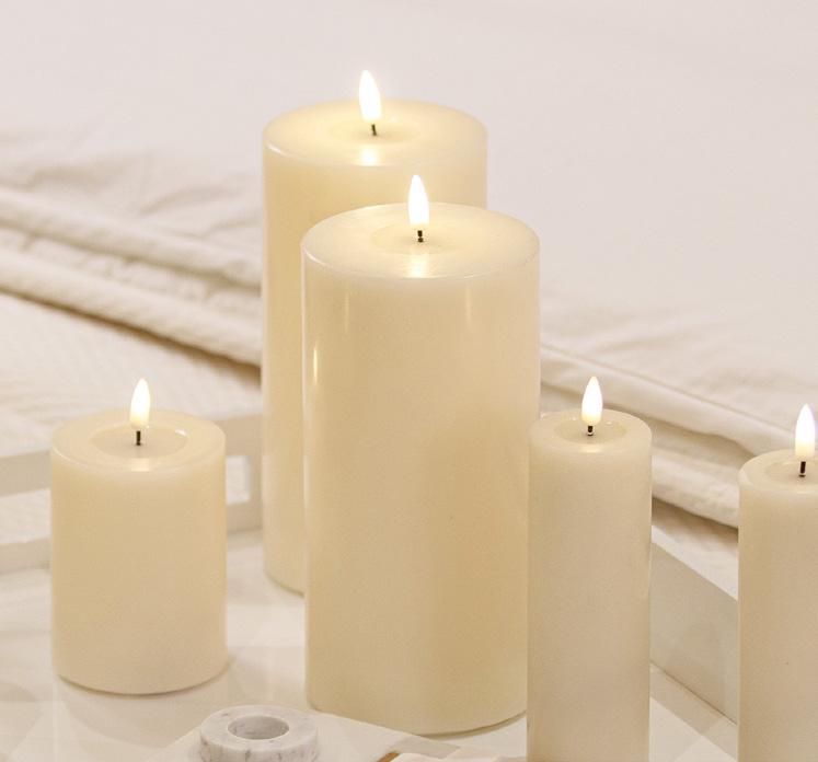 Cream Realistic LED Candle - 20cm, £32.00 | Lunar Oyster Individual Headboard Panel - 45cm, £139.00 | Lili Extra Thick Faux Fur Oatmeal Throw, £99.00 | Valentina Oyster & Gold Channelled Headboard (opposite), from £1,399.00