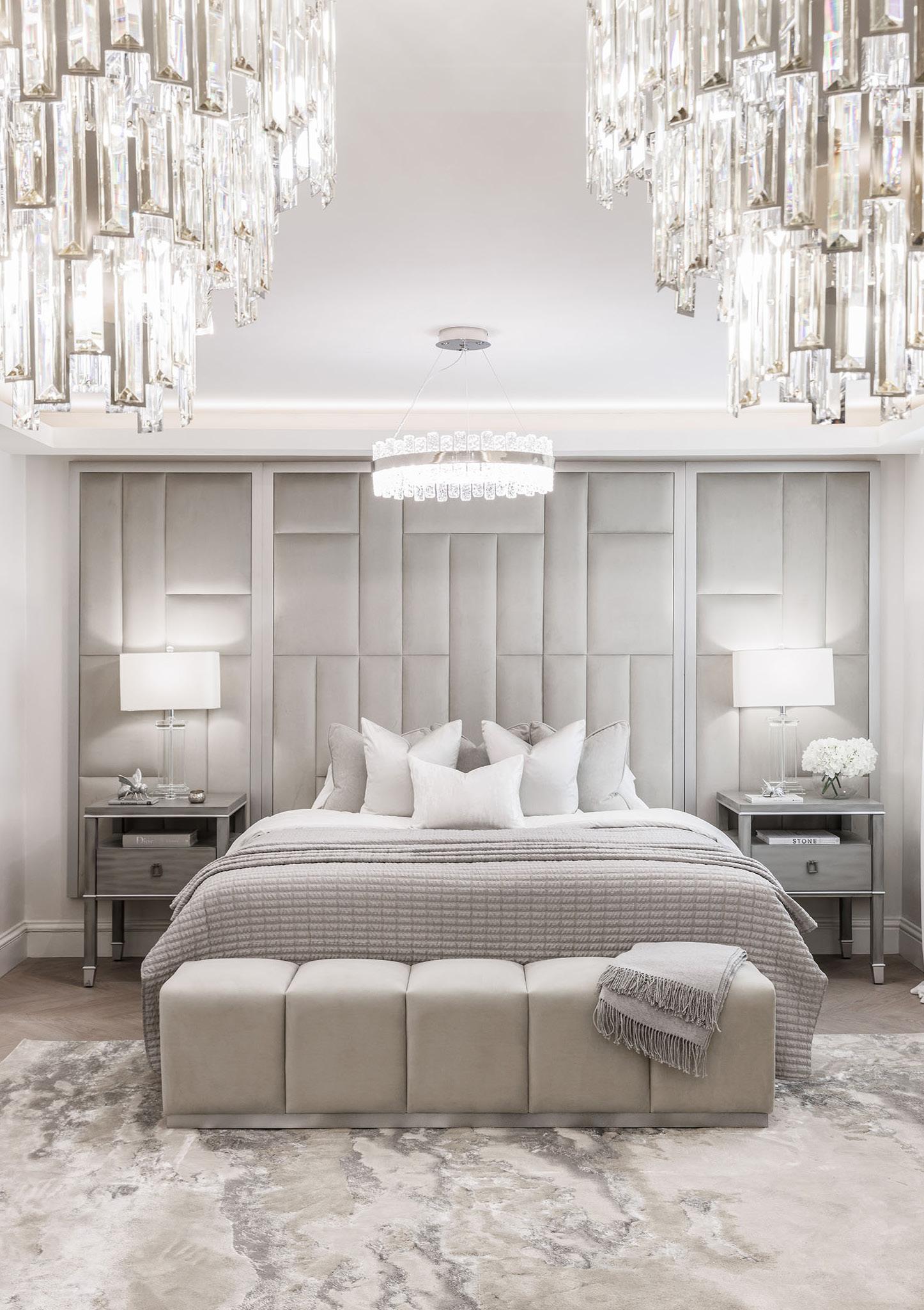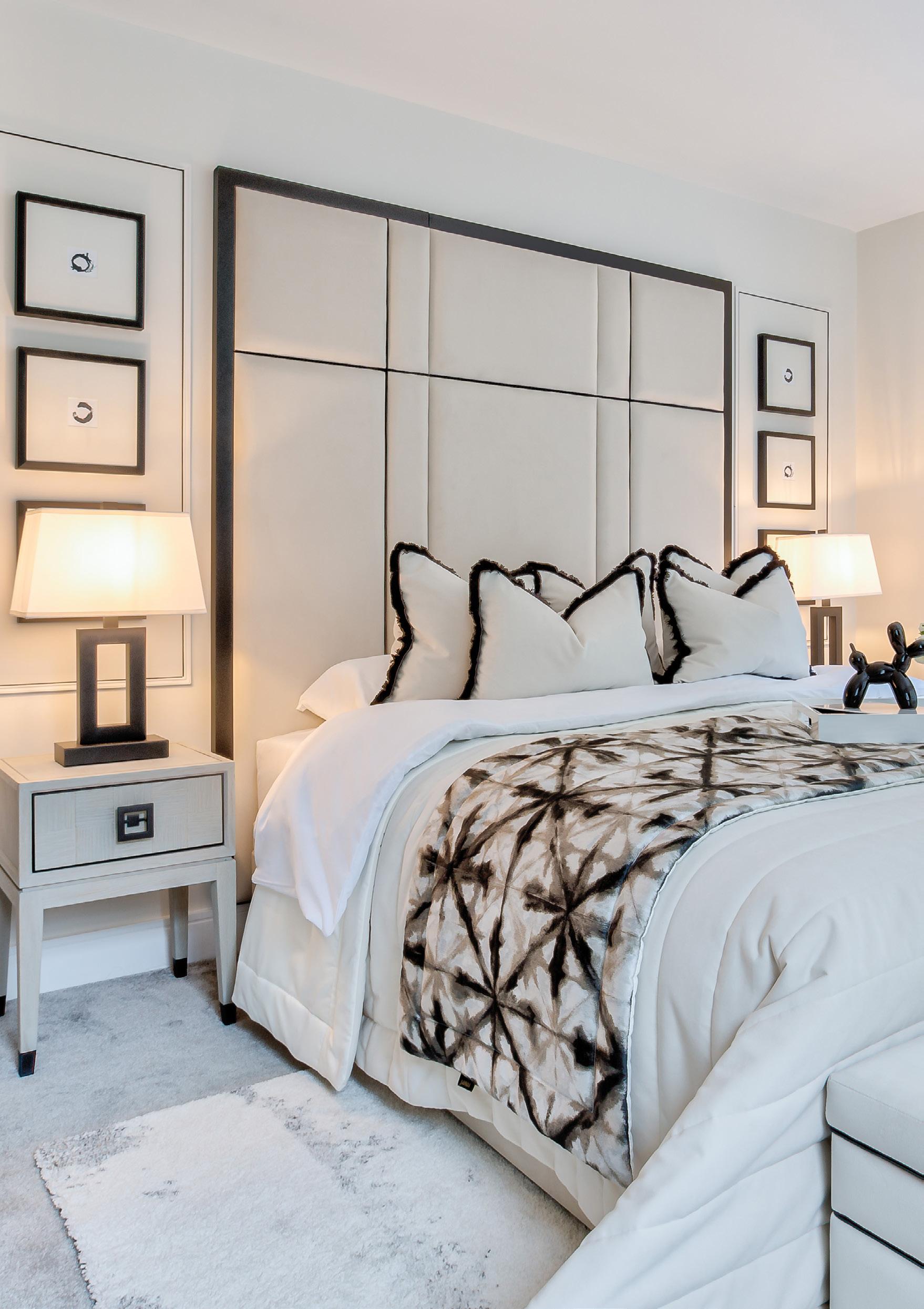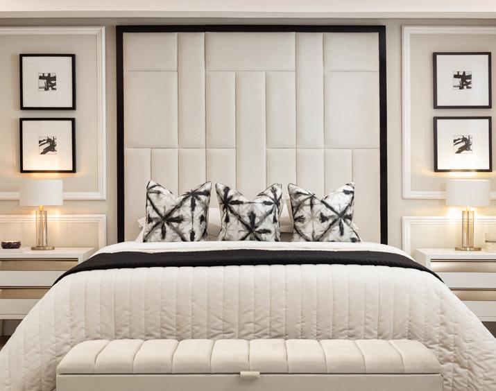 Monochrome Art Set of 2, £119.00 | Hugo Black Quilted Bedspread, from £44.00 | Arizona Black & Grey Print Cushion - 50 x 50cm, £44.00 | Kensington Cream Panelled Ottoman Box, from £369.00 | Kensington Cream Premium Headboard with Wooden Frame (opposite), from £1,299.00