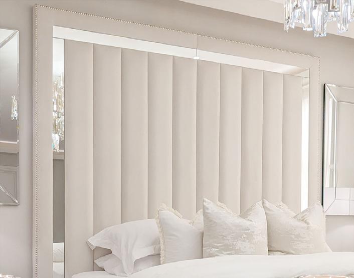 1. Kensington Cream Premium Headboard with Wooden Frame, from £1,299.00 | 2. Sunburst Cream Velvet & Gold Headboard with Wings, from £2,699.00 | 3. Chelsea Cream Velvet Mirrored Studded Premium Channelled Headboard, £1,499.00 | 4. Valentina Praline & Gold Channelled Headboard with Wings, from £2,699.00