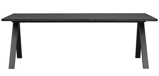 Solid finger jointed European RUBIO-oiled oak in the whole table; oak, brown and whitewash version. Emmett dining table in black is lacquered ash.