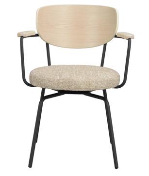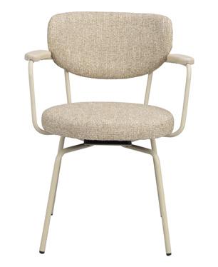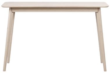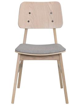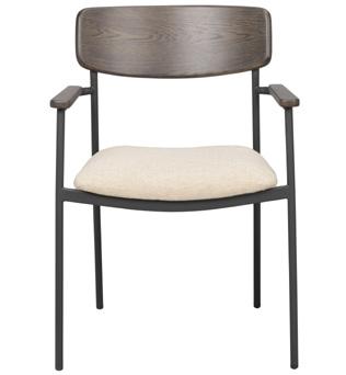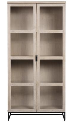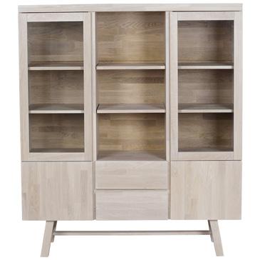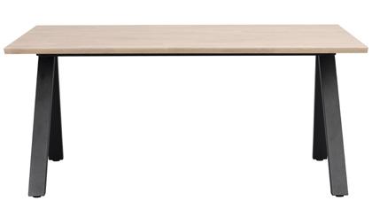 Oiled, finger jointed solid oak with whitewash finish. Brown and oak are made of lacquered, finger jointed solid oak with brushed finish. Legs in powder coated metal in sand structure.