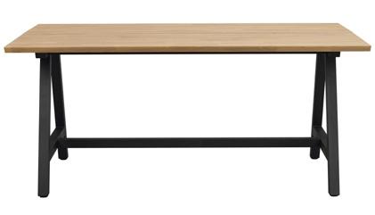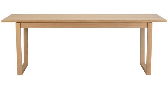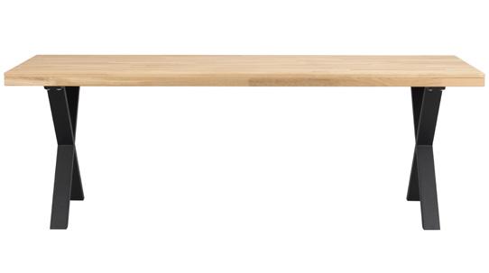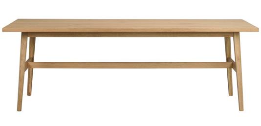 Solid fingerjointed oak in top (25mm), solid oak in full length lamellas in legs and apron. RUBIO-oiled surface treatment.