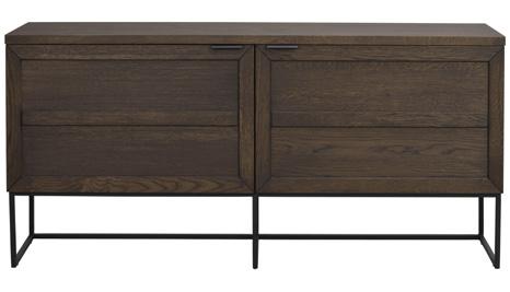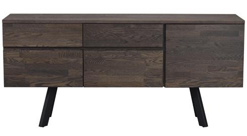 Brown and oak are made of lacquered, finger jointed solid oak with brushed finish. The whitewash version is made of oiled, finger jointed solid oak. Legs in powder coated metal in sand structure.