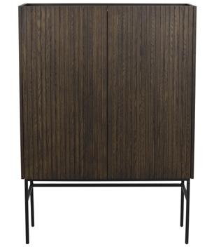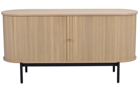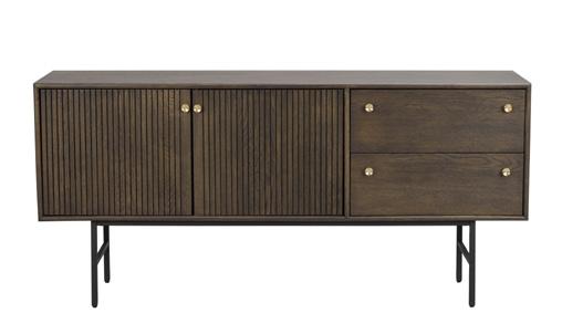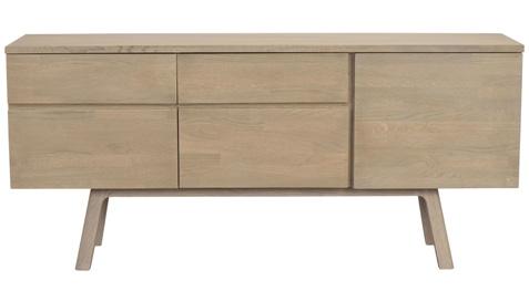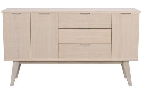 Oak and brown are made of lacquered, finger jointed solid oak with brushed finish. The whitewash version is made of oiled, finger jointed solid oak. Legs in powder coated metal in sand structure.