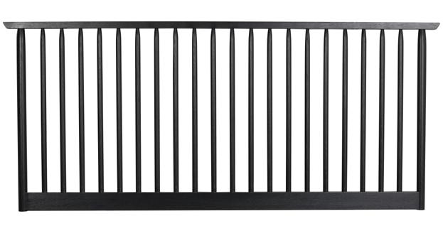 RIGGINS HEADBOARD 120439 Black W 194 D 6 H 125-149 Solid black-lacquered oak. Fits 180 cm wide bed. Hidden adjustable metal legs, for support, in powder coated finish.
