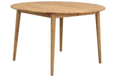 Solid full length lamellas in legs and apron, solid finger jointed oak in top. RUBIO-oiled oak in top. One insert leaf included.