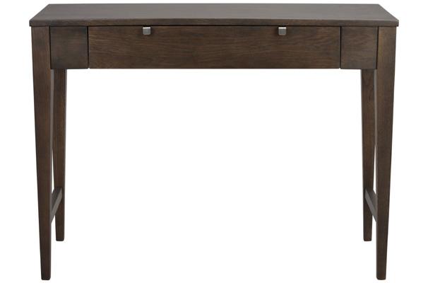 Brown-lacquered top in MDF ash veneer, legs in brown lacquered solid rubberwood.