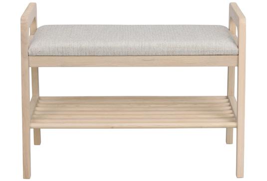INVERNESS BENCH/ SHOE STAND 120721 Whitewash/beige 120720 Brown/beige W 75 D 40 H 55 Solid oak, OEKO-tex fabric in Polypropylene.