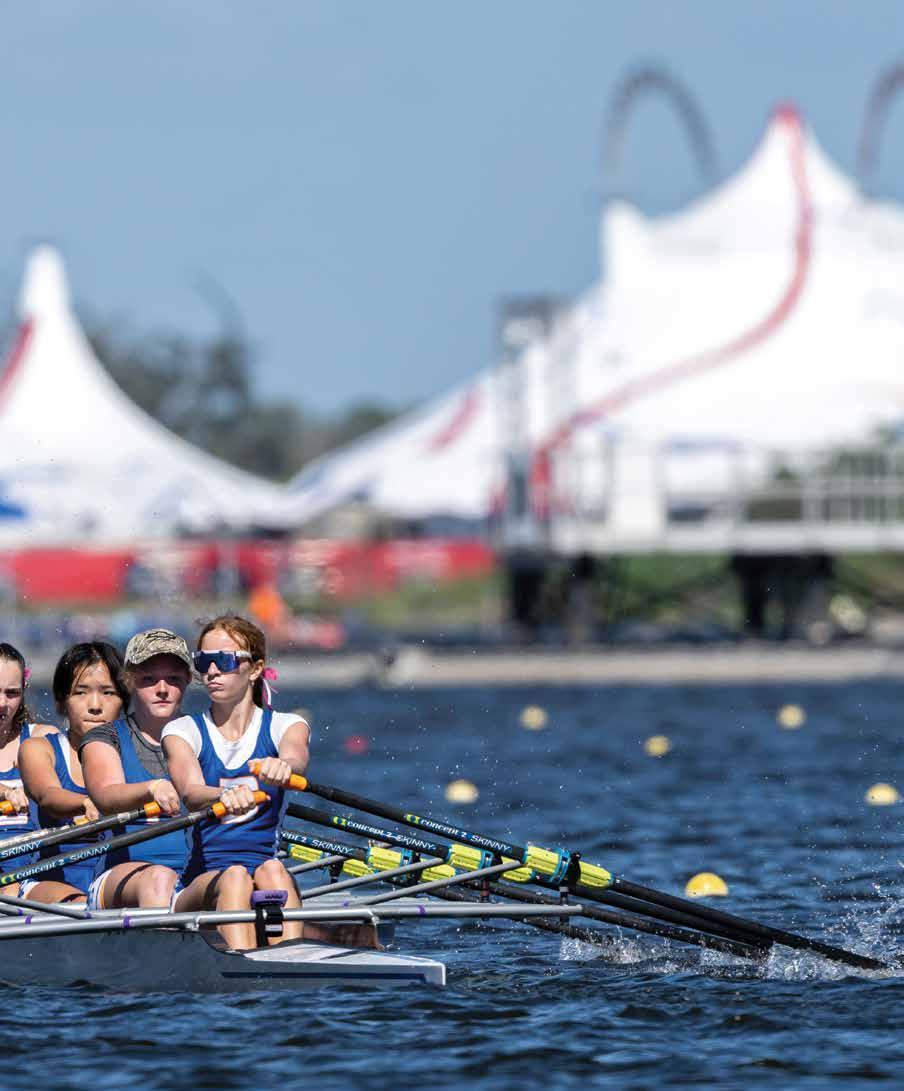The American Youth Cup, captured in three beautiful images by the incomparable Lisa Worthy on pages 18 to 23, drew junior crews from across the continent, including Newport Aquatic Center (California) and Bromfield Acton Boxborough and Wayland-Weston (both in Massachusetts).