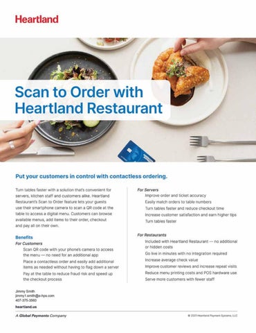 Florida Restaurant & Lodging Magazine is the official publication of the Florida Restaurant & Lodging Association, Inc. (FRLA). FRLA reserves the right to accept, modify or reject any and all content submitted for publication, whether paid or otherwise, solely at its discretion. Unless oth erwise expressly indicated, FRLA does not endorse or warrant any products or services contained herein. In addition, unless otherwise expressly noted, the opinions expressed herein are those of the authors and not necessarily those of FRLA, its directors, officers, members or staff. Content submissions may be made to the Publisher’s Office by regular mail or by email. Please note that submitted materials will not be returned.