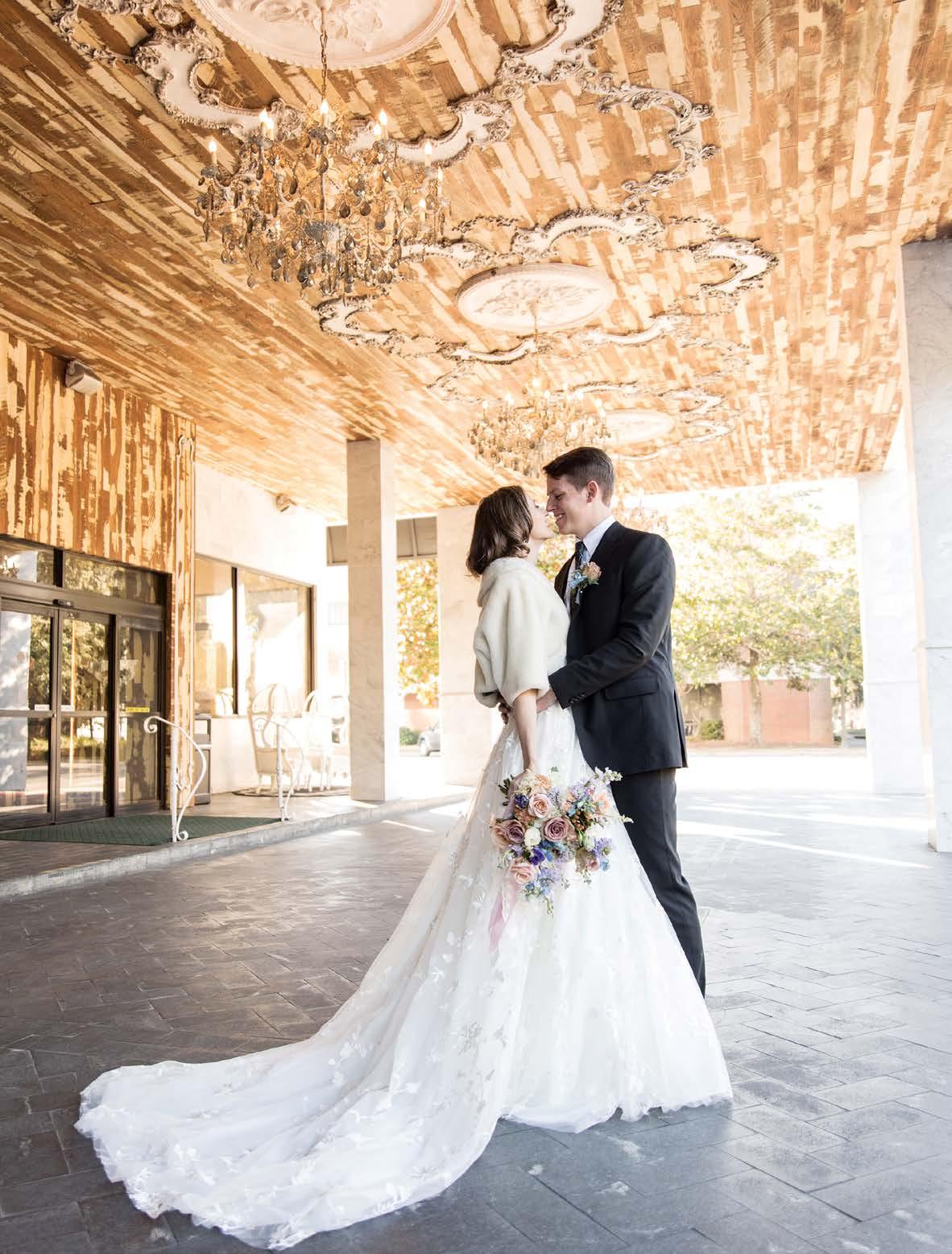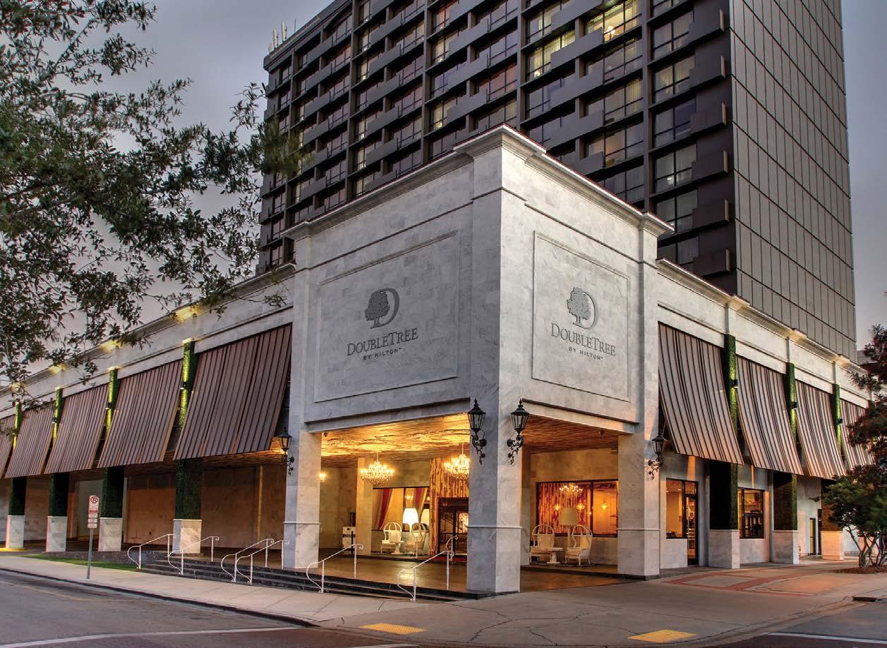 “We chose The DoubleTree by Hilton because of its location and beauty. It has an elegant style with greenery along the walls, a white cloth tent with white chandeliers hanging down, fireplaces and a beautiful view of the sun setting over downtown Tallahassee.”