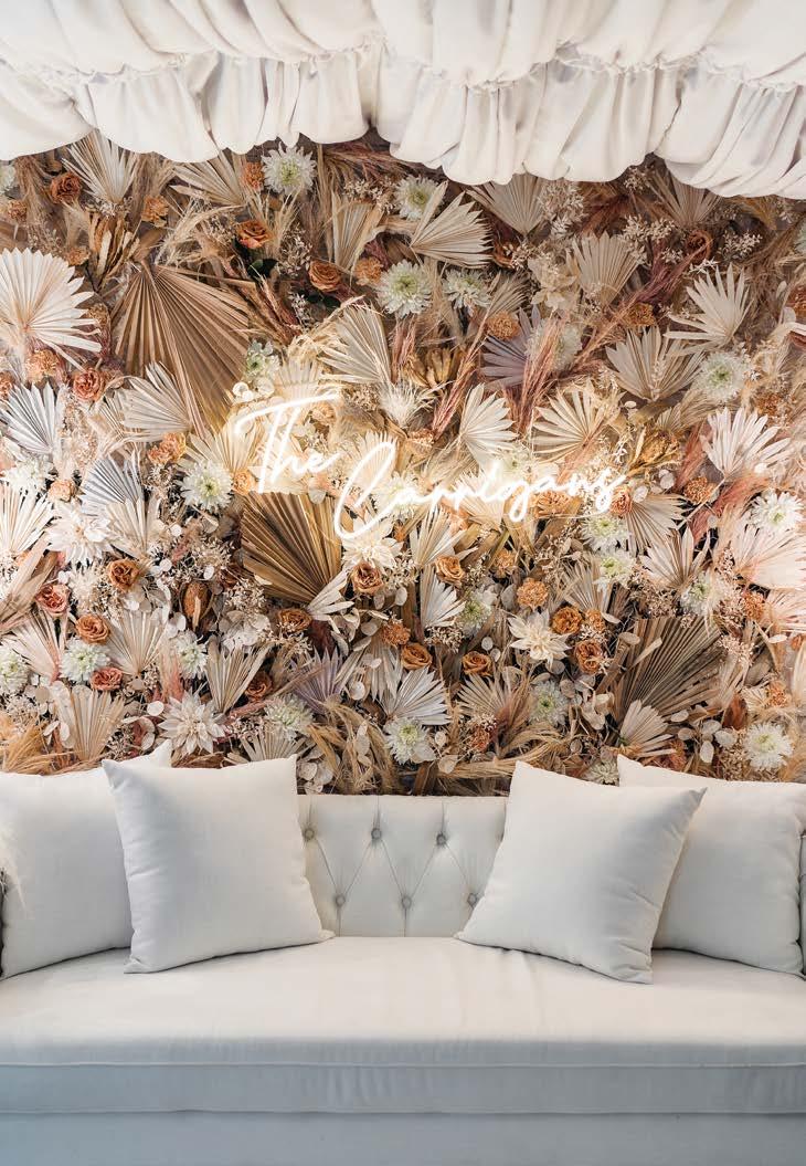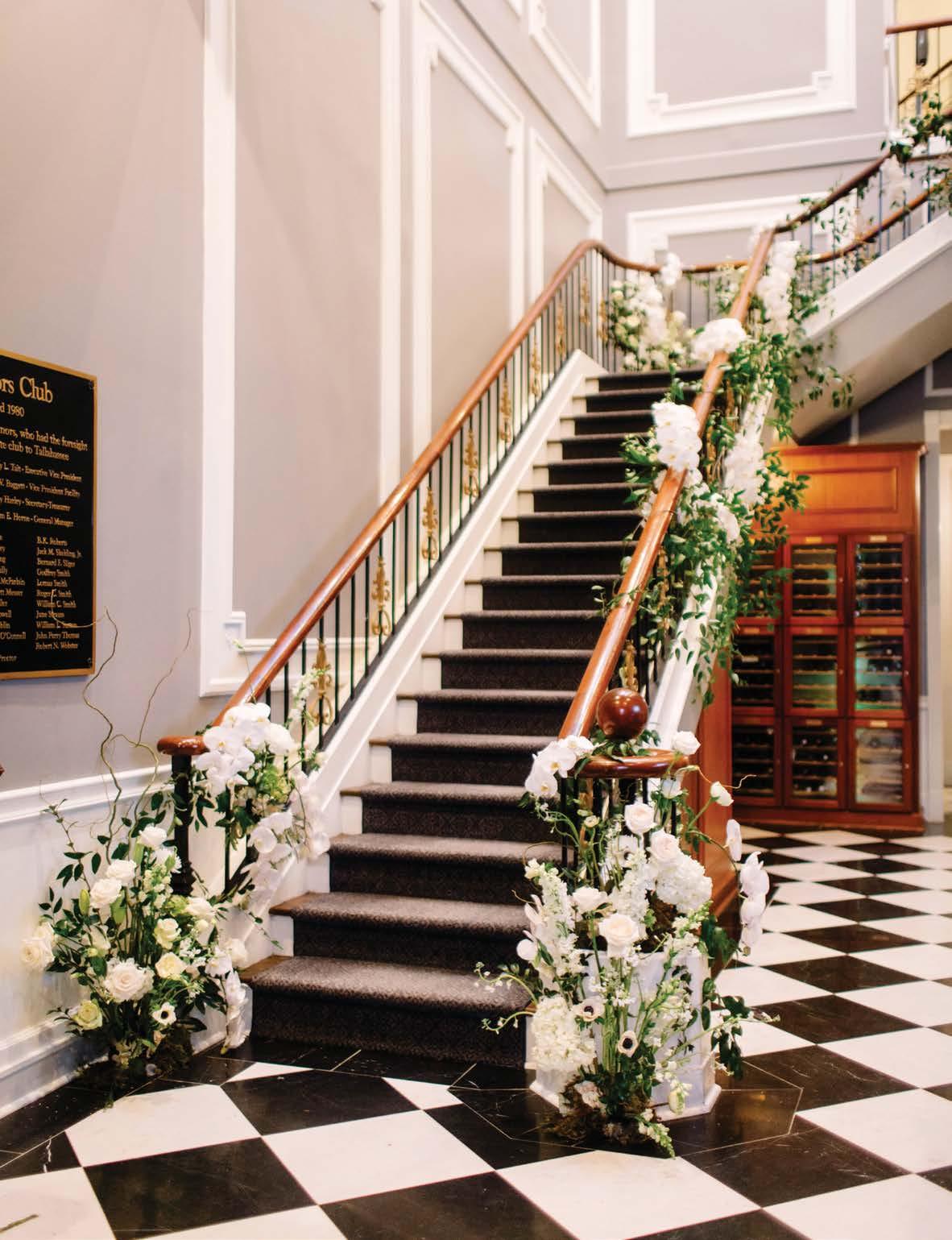 floral monograms, floral walls, floral rings, staircase installs and more.