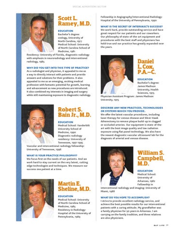I strive to provide excellent radiology service, and achieve the best possible results for our interventional patients with a caring attitude. My grandfather was a family physician for 50 years in Arkansas. I am carrying on the family tradition, and three relatives are also physicians. Bay Life