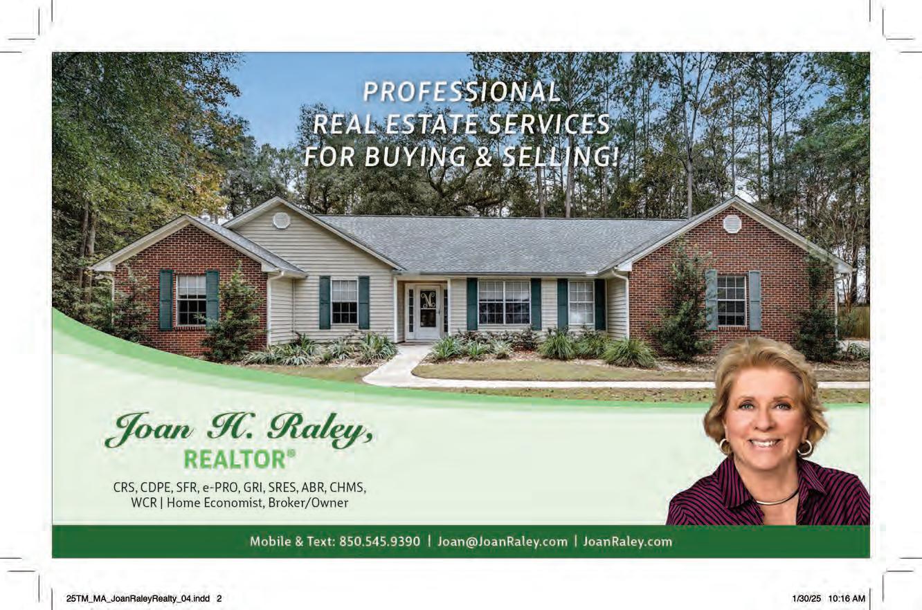CUSTOMER SERVICE & SUBMISSIONS Tallahassee Magazine and Palm Beach Media Group North,LLC are not responsible for unsolicited manuscripts, photography, or artwork. Editorial contributions are welcomed and encouraged but will not be returned. Tallahassee Magazine reserves the right to publish any letters to the editor. Copyright March 2025 Tallahassee Magazine, Inc. All rights reserved. Reproduction in whole or part without written permission is prohibited. Partners of Visit Tallahassee and Member, Greater Tallahassee Chamber of Commerce
