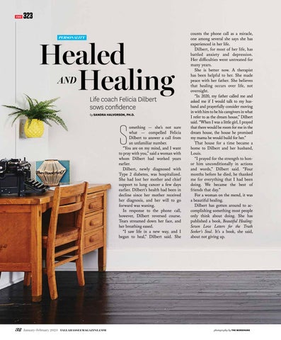 32 PERSONALITY Felicia Dilbert has been through some tunnels in life, including battles with depression and anxiety, but she has emerged as an optimist with a powerful zest for life.