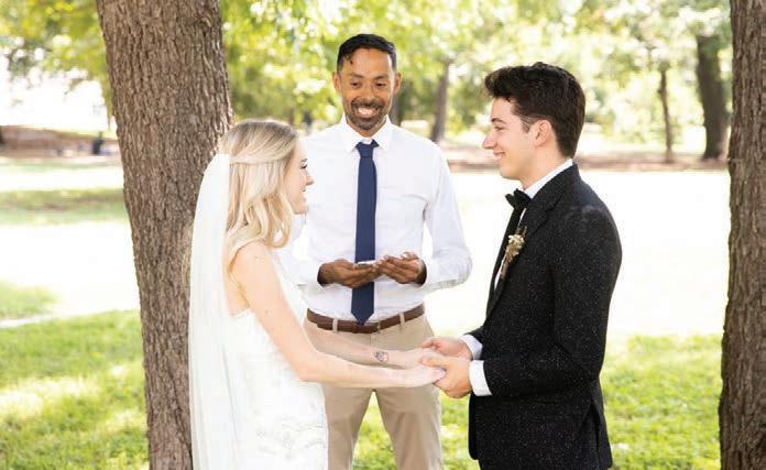 From top: Mark Powers ’02 married Alicia Bouges in Copper Mountain, Colorado, in December 2019; Matthew Gattozzi ’14 and Kristina Brennan married in Austin in June 2020; (right) Massachusetts State Trooper Andrew Zeller ’99 was honored as an Officer of the Month for May 2020; Aditya Mahalingam-Dhingra ’08 married Jackie Bruleigh in December 2019.