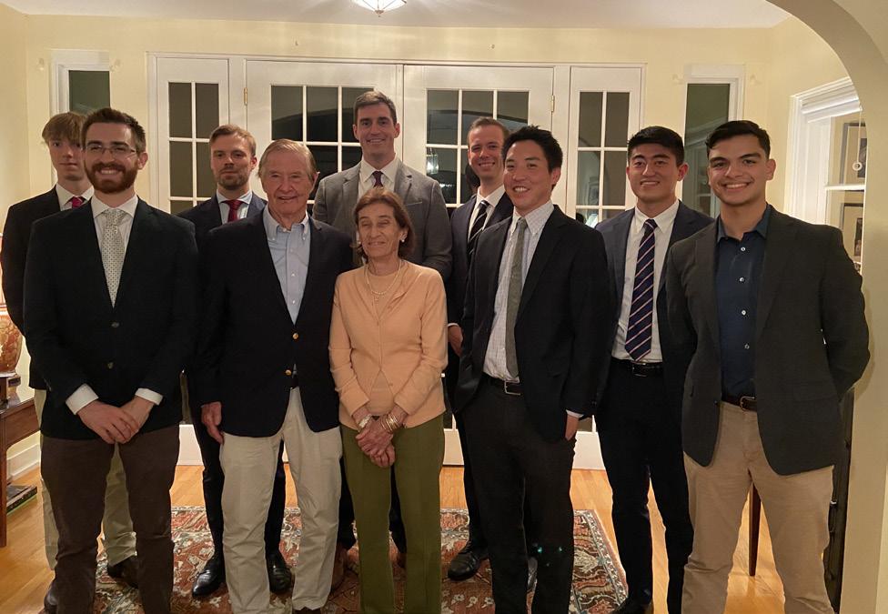 9 On October 1, several of RL’s Hennessy/Eton Scholars from over the years had dinner at Headmaster Brennan’s house with their benefactors, Jack ’54 and Margarita Hennessy. Pictured from left are Jake Carroll ’21, Collin Epstein ’13, Brendan Hanrahan ’09, Mr. and Mrs. Hennessy, Fernando RodriguezVilla ’06, Oliver Booth ’17, Matthew Wang ’05, Kevin Zhu ’16, and Quito Sanchez ’19. //