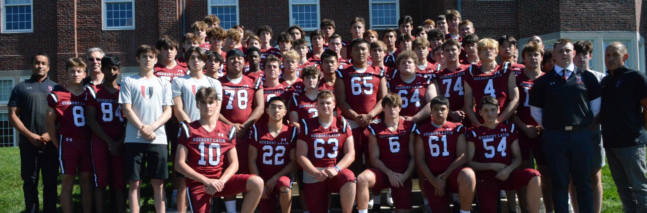 Varsity Football — Kneeling: JP Ward, Ryan Lin, Jon Cerullo, Nick Consigli, Khiomany Ortiz, Mark McGuire; Front Row: Gavin Lane, Nitin Muniappan, Nick Martin (Manager), Teddy Lee (Manager), Krystian Reese, David Sullivan (Captain), Harry Lonergan (Captain), TK Ghapontsang (Captain), Aidan Gibbons (Captain), Harry Brennan, Riley Stanton, Johnny Price, James Gibbons (Manager), Matt Golden (Head Coach), Nico Papas (Coach); Second row: Tony Teixeira (Coach), John Lieb (Coach), Robby O'Shaughnessy, Michael DiLallo, Noah Abdur-Rahim, Reid Spence, Justin Loo, Matt Golden, Marc Albrechtskirchinger, Timmy Ryan, Tom Pender, Jonathan Loo, Nick Galdo; Third Row: Braden Place, Finn Leary, Ben O'Keeffe, Tucker Rose, Ryan Conneely, Andrew Bingham, Peter DeVito, Danny Tobin, Caleb Meredith, Mo Randall (Coach), Taylor Fitzgerald (Coach); Fourth Row: Declan Bligh, Auden Duda, Ben McVane, Logan McLaughlin, Michael Strojny, Lucas Numa, Matt Bastardi, Shane Bernazzani; Back Row: Michael Rimas, Jacob Strojny, Habo Baaj, Sam DiFiore, Sam Seaton, John Thomas, Camden Carr, Liam Russell, Chris Vlahos.