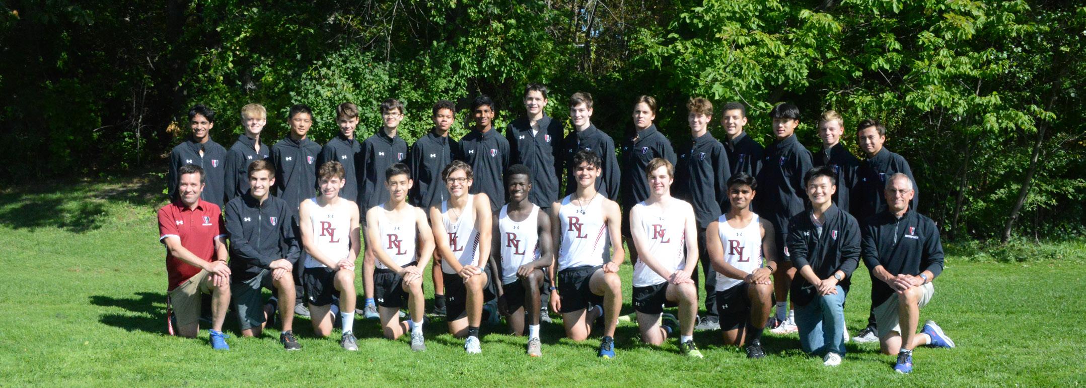 Varsity Cross Country — Front row: Bryan Dunn (Head Coach), Owen Butler (Manager), Tommy Reichard, Mathias Why, Michael Allen, Kofi Fordjour (Captain), Michael Thomas (Captain), Thomas Savage, Akshay Kumar, Eddy Pan (Manager), Chris Heaton (Coach); Back Row: Raj Saha, Lucas Connors, Nathan Zhang, Quinn Thomson, Darian Estrada, Eric Diop, Akhilsai Damera, Jack Tompros, Levi Harrison, Jake Popeo, Brendan Reichard, Ezra Klauber, Eric Zhu, Zach Heaton, Calvin Reid (Missing: Matt O'Connor, Manager).