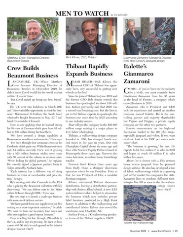 IAMI BEACH—Rick Kilmer, the current CEO of Thibaut has apparently been very successful in putting new wheels on his bus! Since he joined Thibaut in June 2019 and the former CEO Bob Senior retired, the business has quadrupled to about $16 million. Kilmer previously said that 2020 was a record year breaking year; but the best is yet to be! Kilmer expects to quadruple the business one more time by 2025 according to one industry source. That will put the company in the $50-$60 million range making it a major player in U.S. fabric wholesaling. Thibaut, a wallcovering design company founded in 1886, has changed hands several times in the past six years, first with Champlain Capital about six years ago and then with Norwest Equity Partners based in Minneapolis three years ago. Norwest also owns Arteriors, an online home furnishings retailer. Norwest hired Kilmer three years ago from Holly Hunt, a designer showroom operation where he was President. Prior to that, he was President of Flor, a modular flooring company. Kilmer reinvented Thibaut showroom distribution, leaving a distribution partnership with Robert Allen behind. A new ERP system followed which helped to streamline the business which now includes private label furniture produced in a High Point factory in addition to the wallcovering and coordinated fabrics. Kilmer also moved the warehouse near Charlotte, NC. Surface Print, a UK wallcovering producer is one of the Thibaut suppliers. F&FI