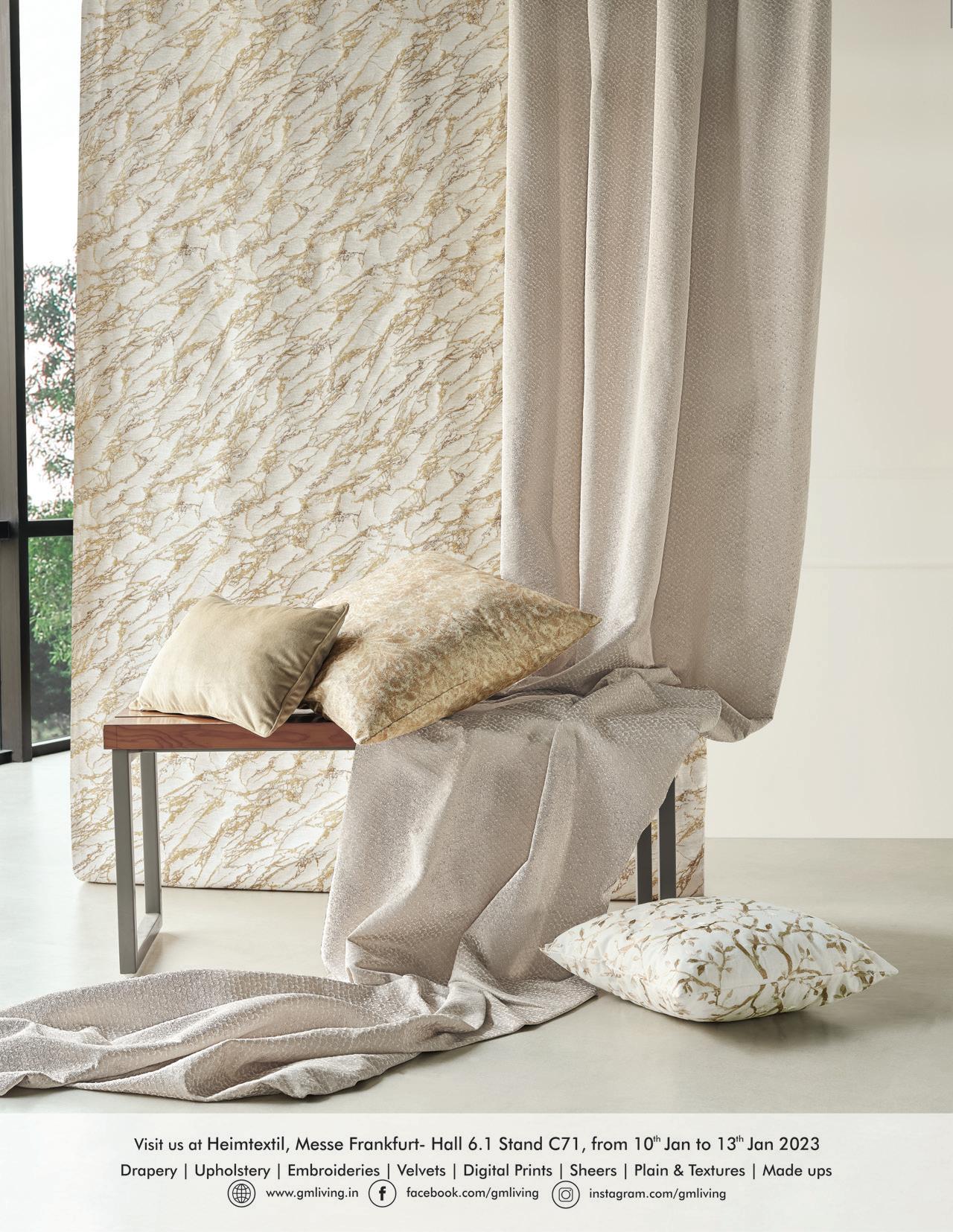 “Vista also specializes in 100% blackout coated curtain fabrics and we are planning to grow on our strength by adding two wide-width coating lines: this will double our capacity. We shall be ready to service the requirements of wide-width blackout fabrics by the end of January 2023,” Agarwal says. “Sunflame a textured / jacquard black out curtain and “Paolo” a poly-cotton plain upholstery are the most trending products in all of the markets,” she says.