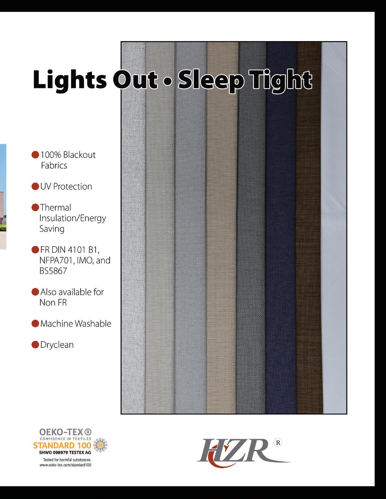 him the ability to produce wide width roller blind fabric without seams. “With these looms, we could make decorative statement with roller blind fabric instead of offering just gray and white fabrics,” he explains. The products are acoustical, anti-bacterial and anti-viral in woven polyester and available in FR, he adds.