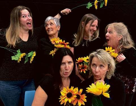 Onstage:LisaPope,SueDavey,CorrineOut,LoreneStuart,ColleenBrowandKateduCrosstarin Calendar Girls TheStage43productionrunsJan 12to21attheEvergreenCulturalCentre It’soneof two Calendar Girls productionsthismonthfeaturingNewWestminsteractors
