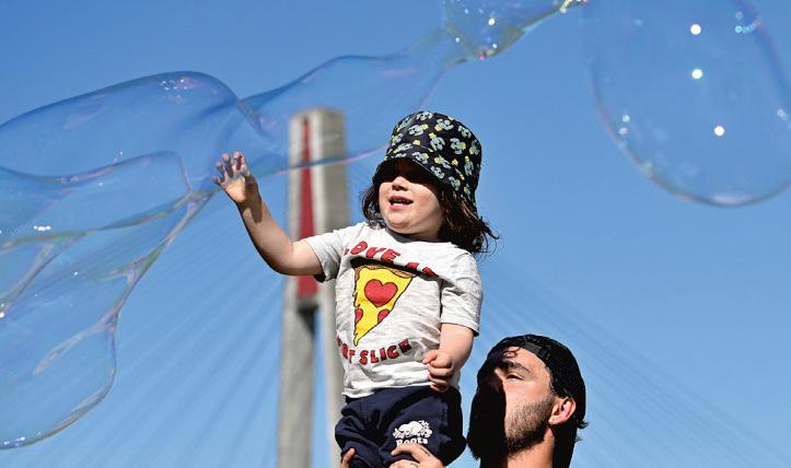 CHASING BUBBLES: Nando Raupp lifts three-year-old Martín Raupp during last year’s Canada Day events at Westminster Pier Park Families can find Canada Day fun on both sides of the river this year, with events at Pier Park and in Queensborough