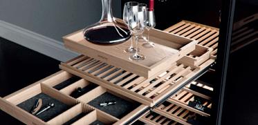 Het volledig uittrekbare serveergedeelte met ServingTray en AccessoryDrawer van beukenhout presenteert elke wijn op zijn best. Ook kun je in deze zone je te serveren wijn al op de juiste temperatuur brengen.