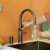 Naast koud, warm en 100°C kokend water geeft de Quooker-kraan nu ook gefilterd en gekoeld plat en bruisend water. Daarmee zet je zo een potje thee of een karaf limonade op tafel. Ook koken en afwassen wordt zo een fluitje van een cent.