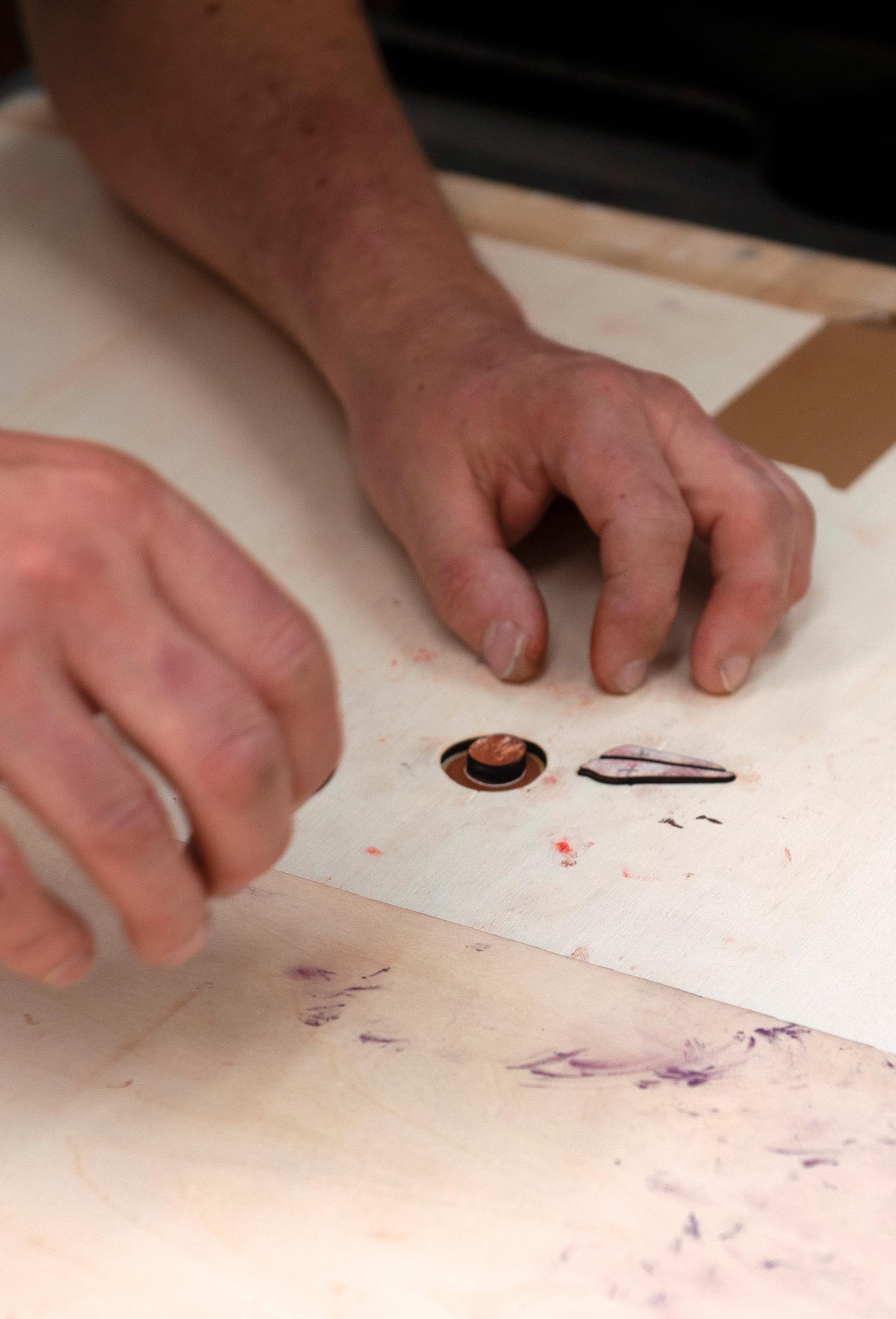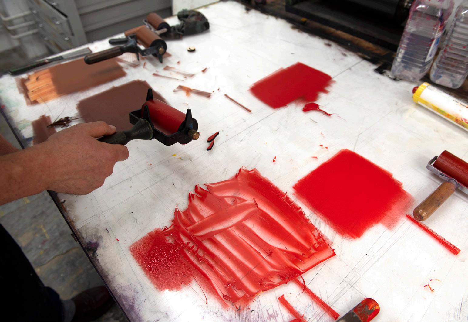 Collaborations, drawing upon the expertise of the print-specialist tutors, are of pivotal importance in supporting artists to realise their creative ideas and perhaps equally important, are the many conversations that spontaneously arise in the workshops, corridors or over a shared lunch time. Such collaborations establish friendships and connections between artists, students and tutors in an informal network of shared experience and support.