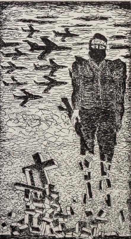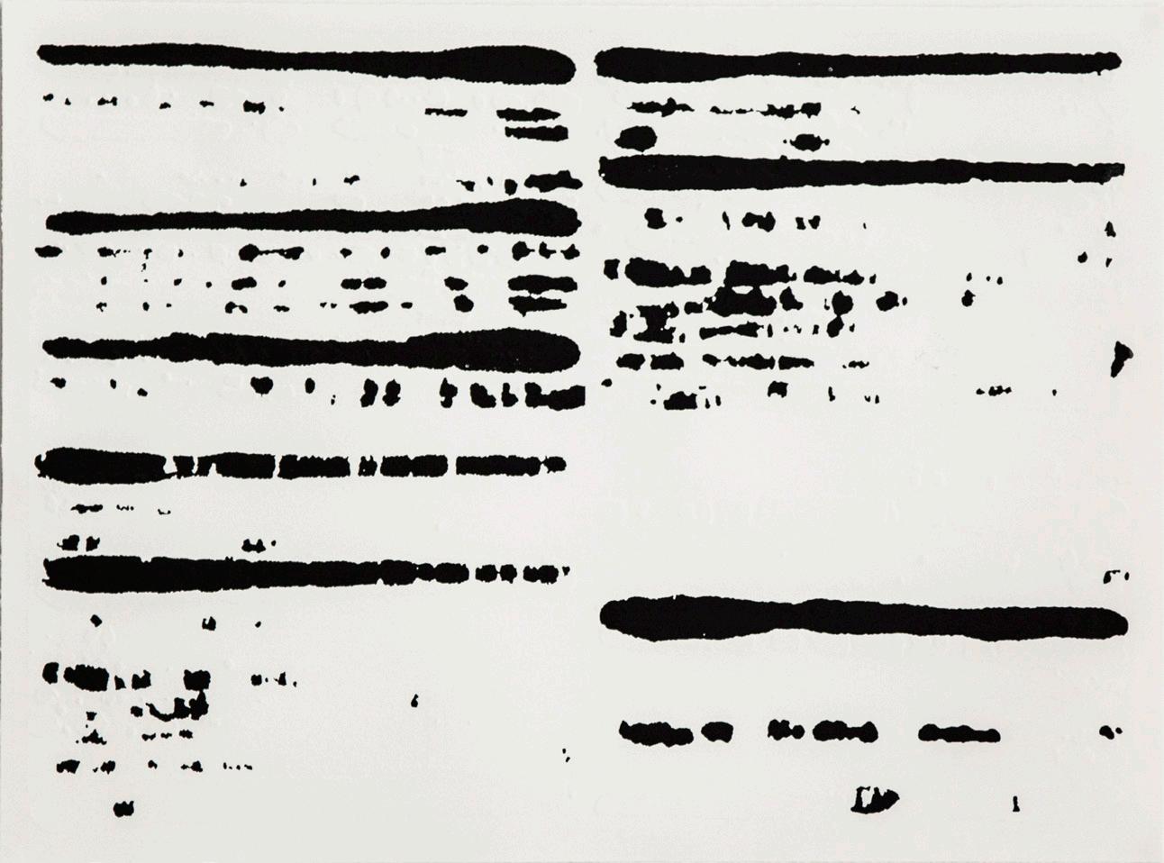 Printed with oil-based inks at Advanced Graphics London, Beattie’s limited palette of black, red and grey lends this work strength and impact.